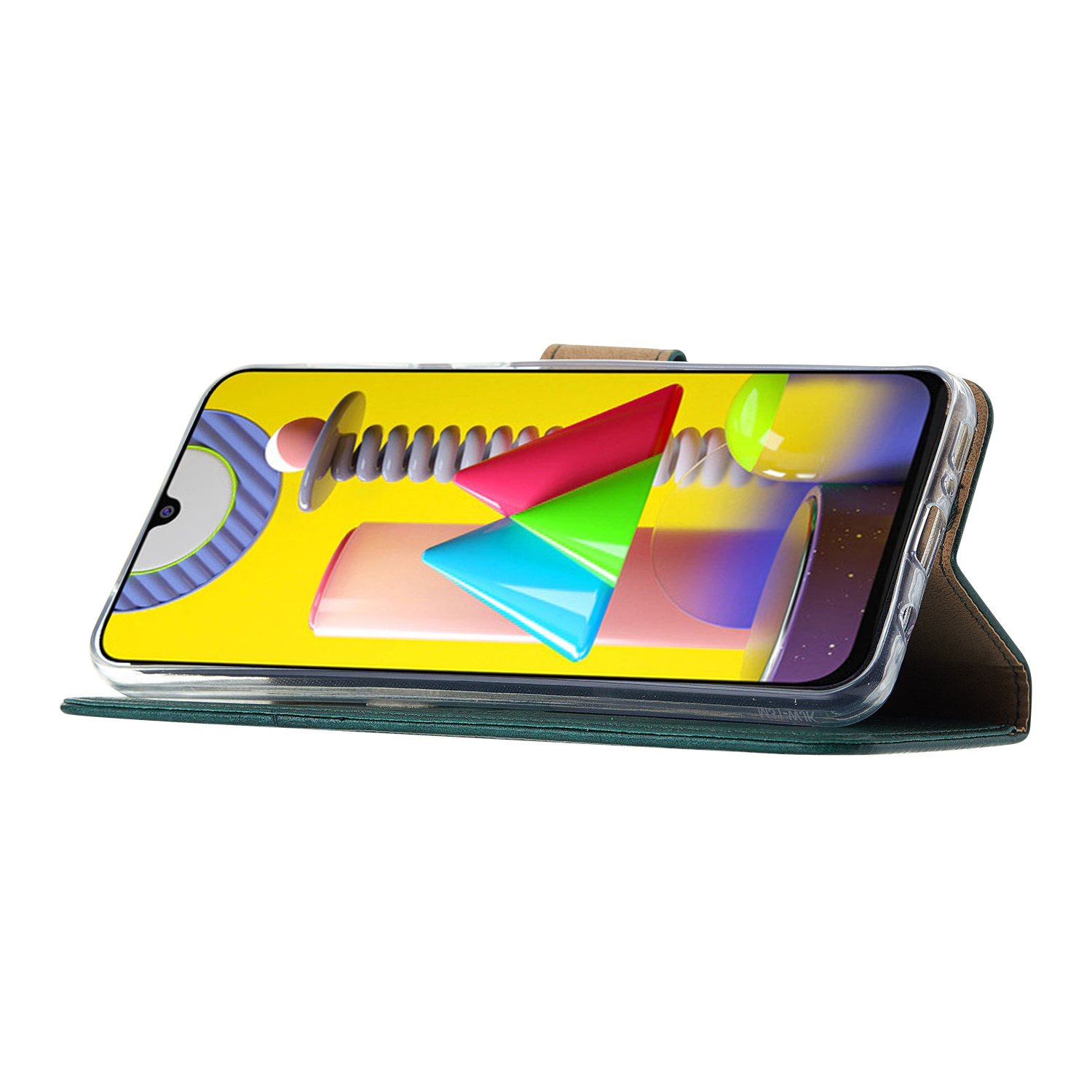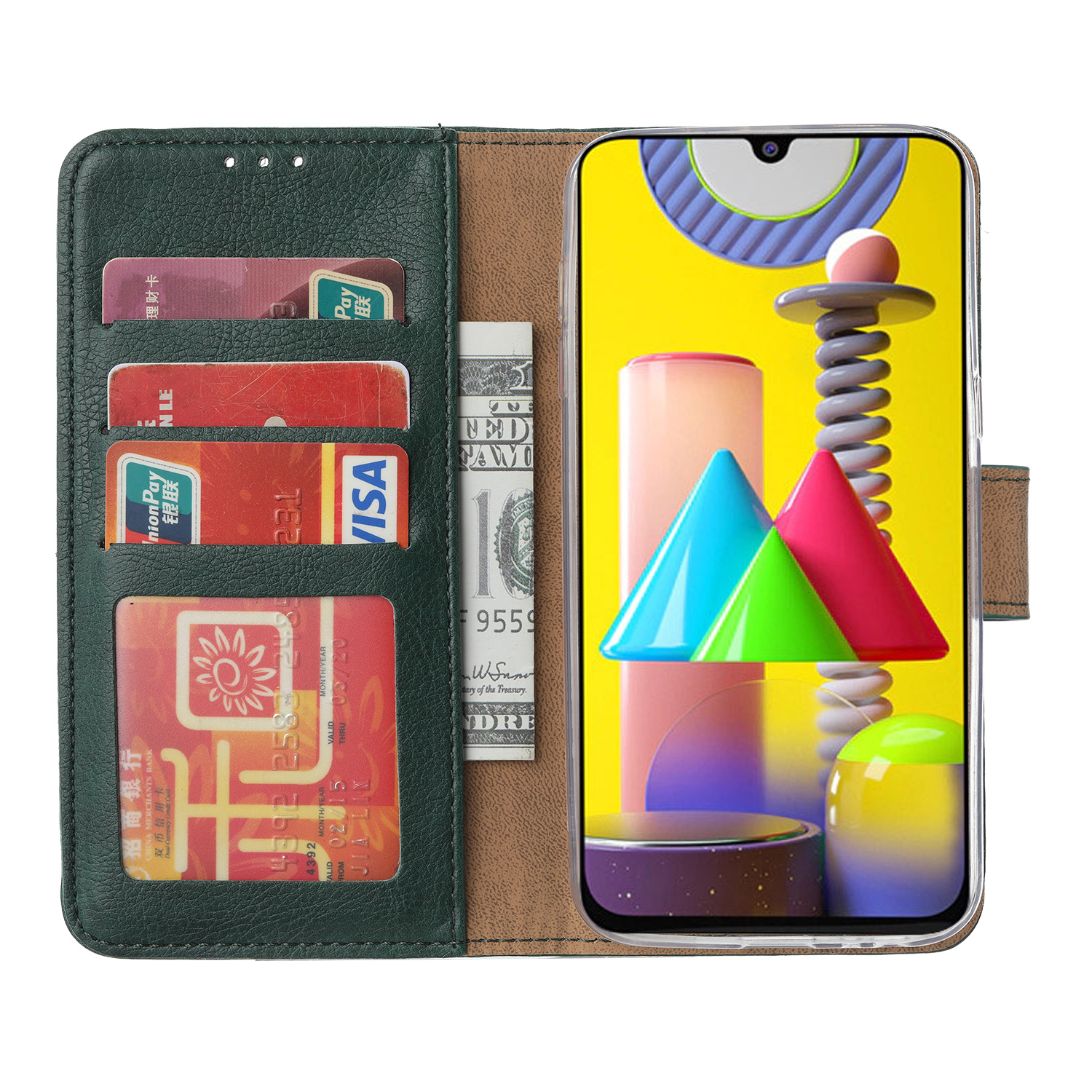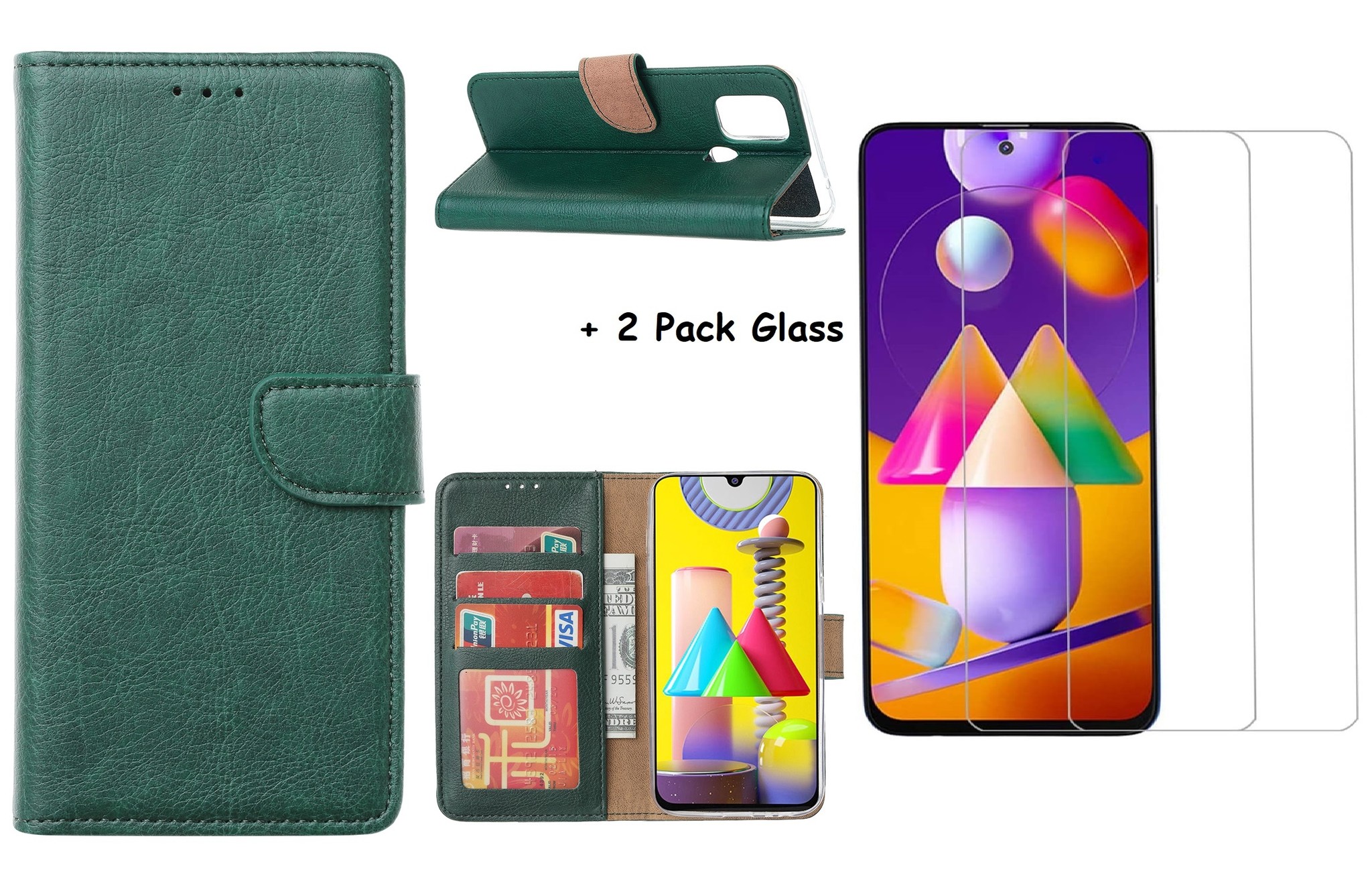 Hoesje Geschikt Voor Samsung Galaxy M31S Boek Hoesje / Wallet cover - Groen Met 2X glas Screenprotector