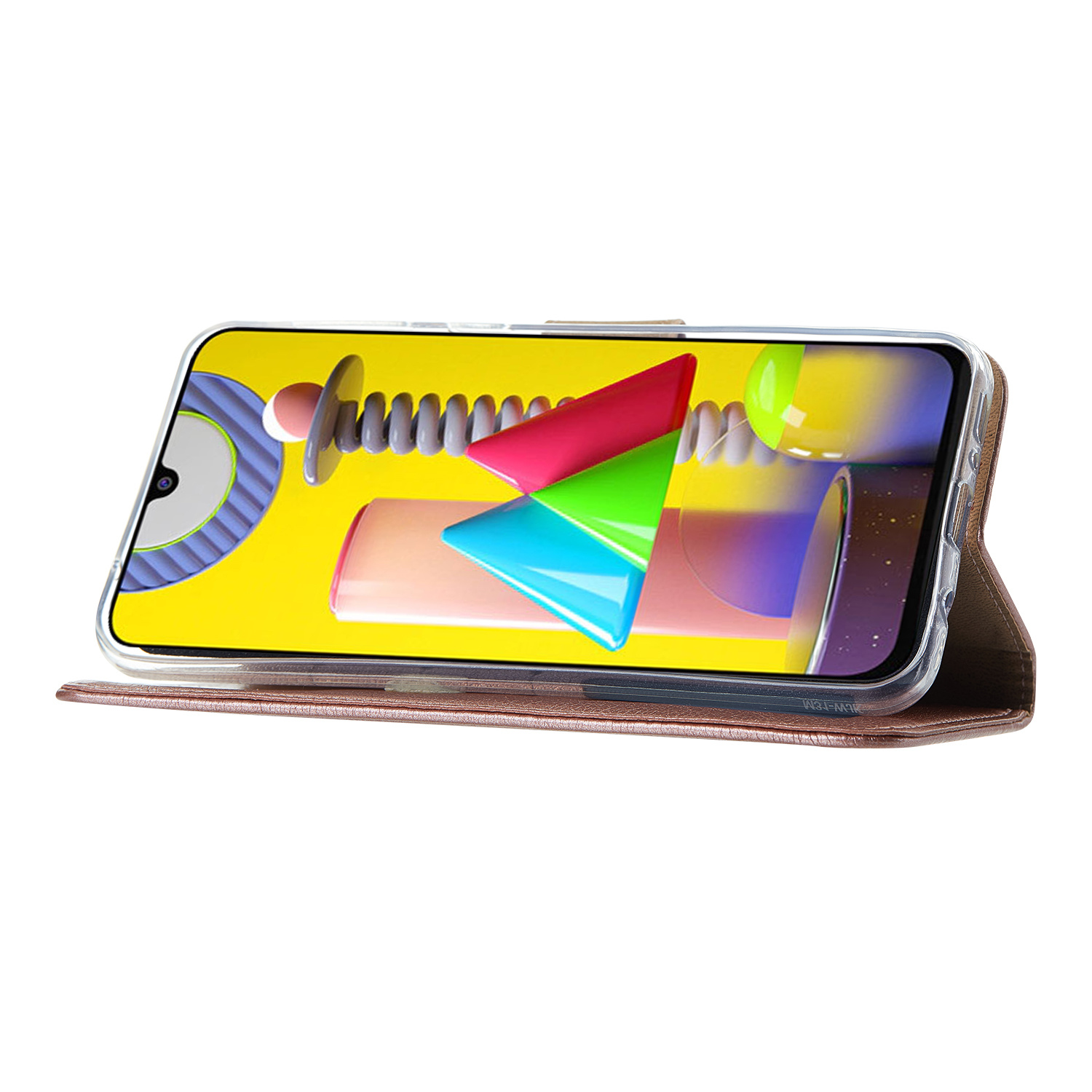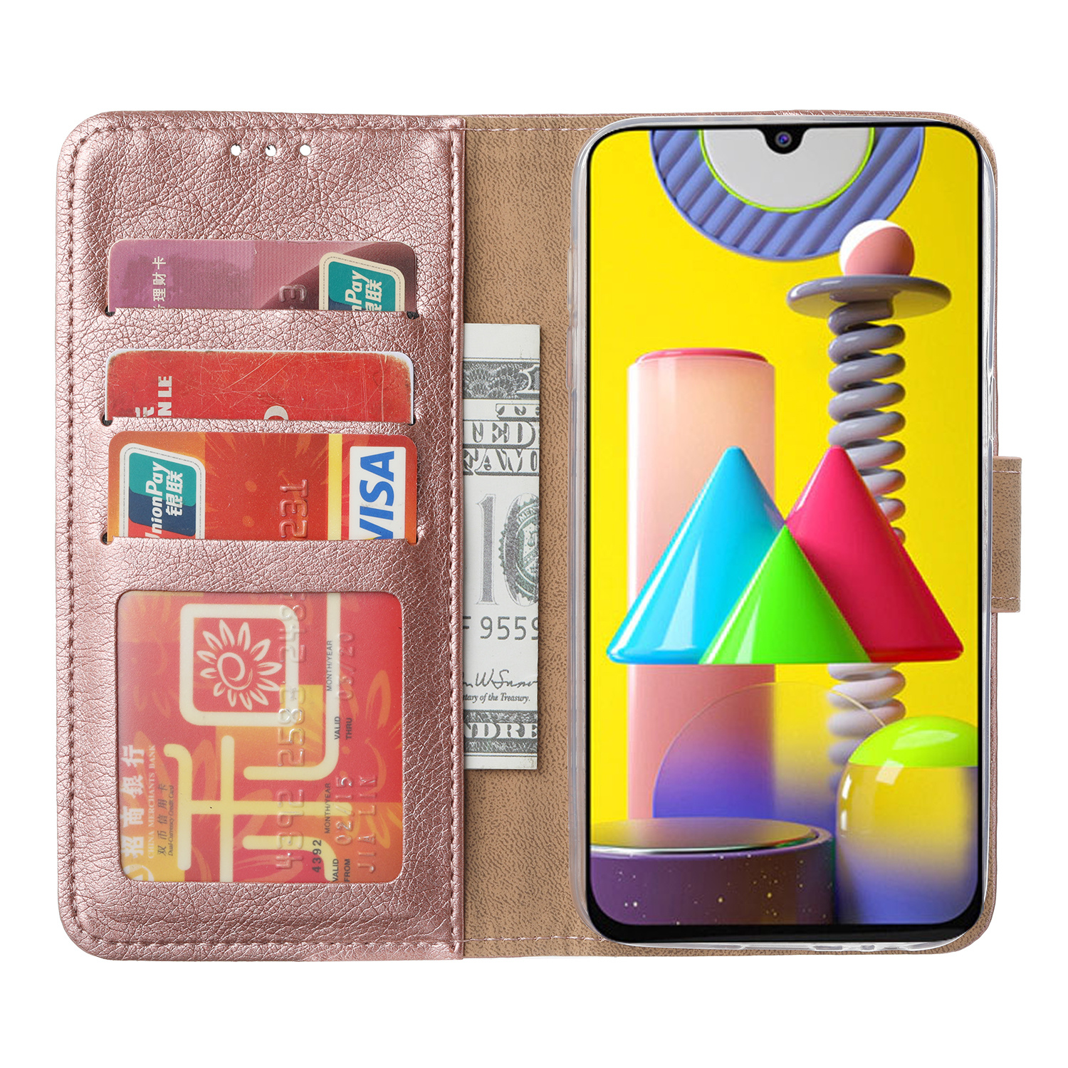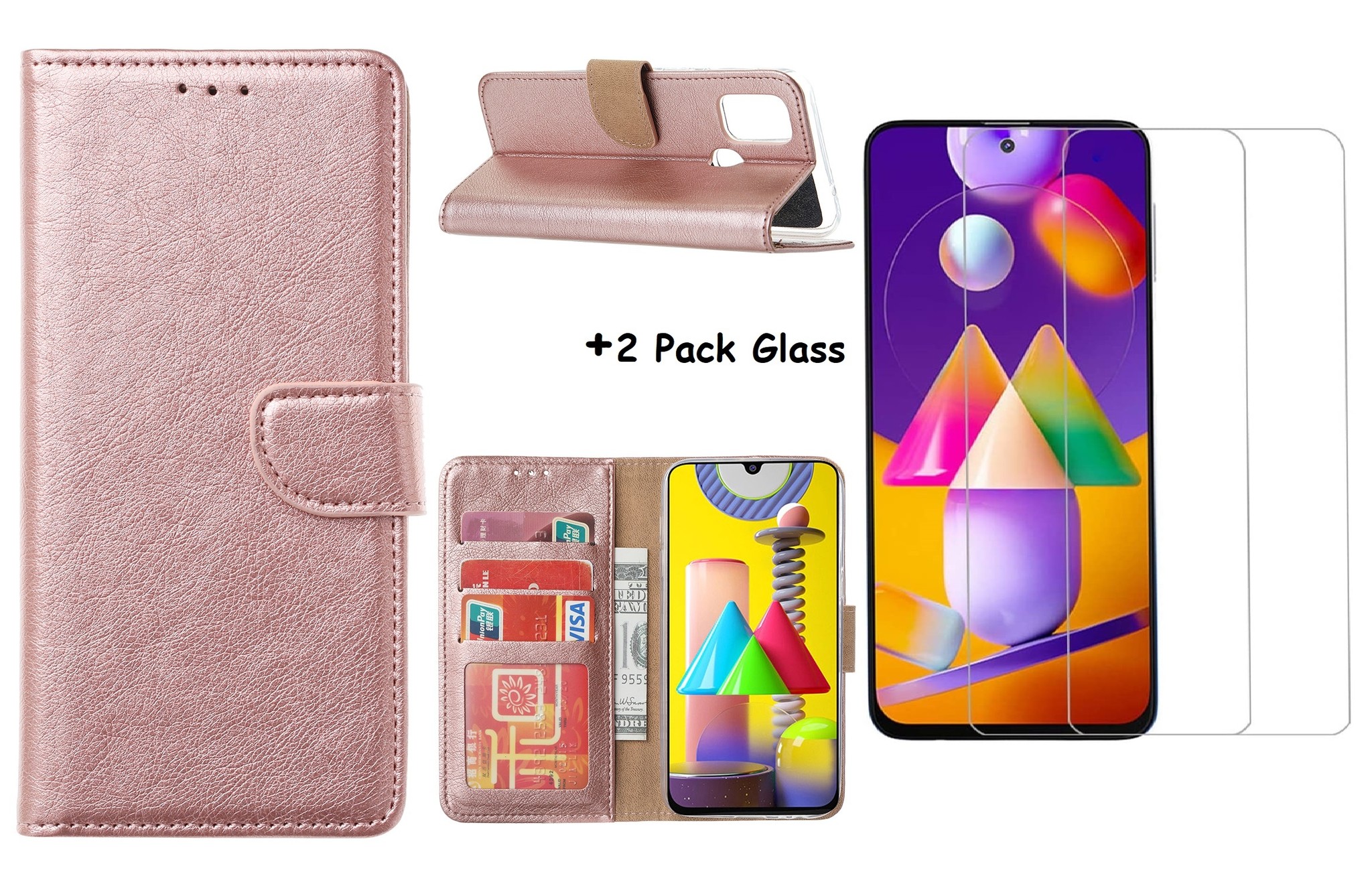 Hoesje Geschikt Voor Samsung Galaxy M31S Boek Hoesje / Wallet cover - Rose Goud Met 2X glas Screenprotector
