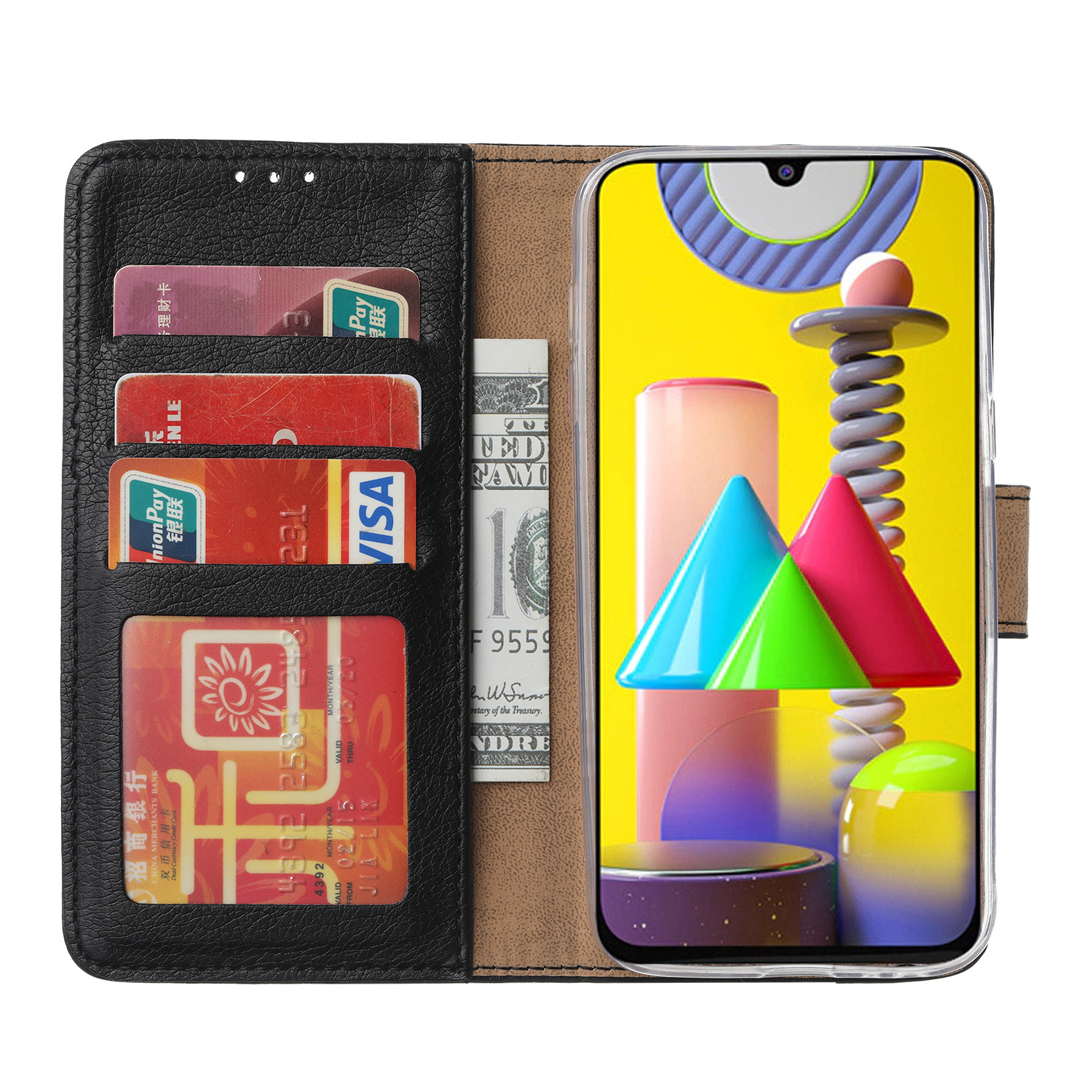 Hoesje Geschikt Voor Samsung Galaxy M31S Boek Hoesje / Wallet cover - Zwart Met 2X glas Screenprotector