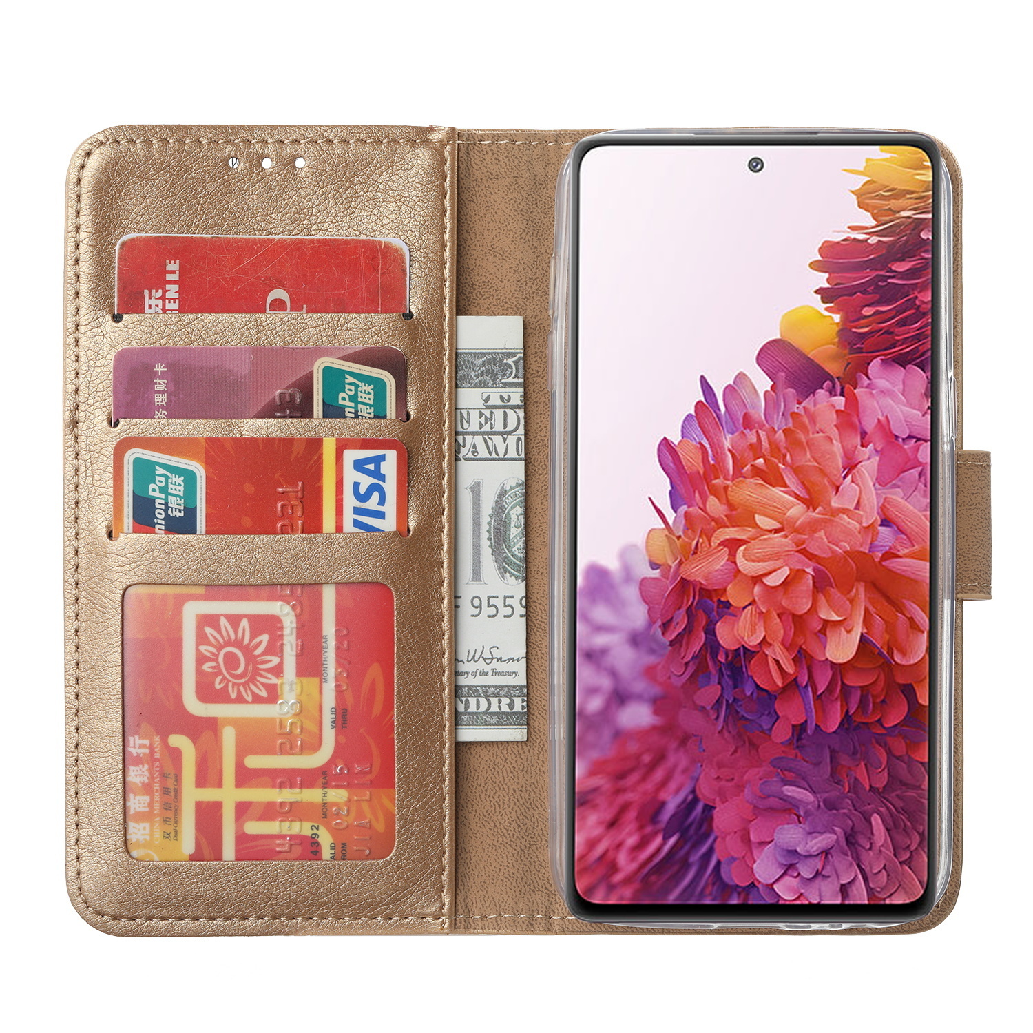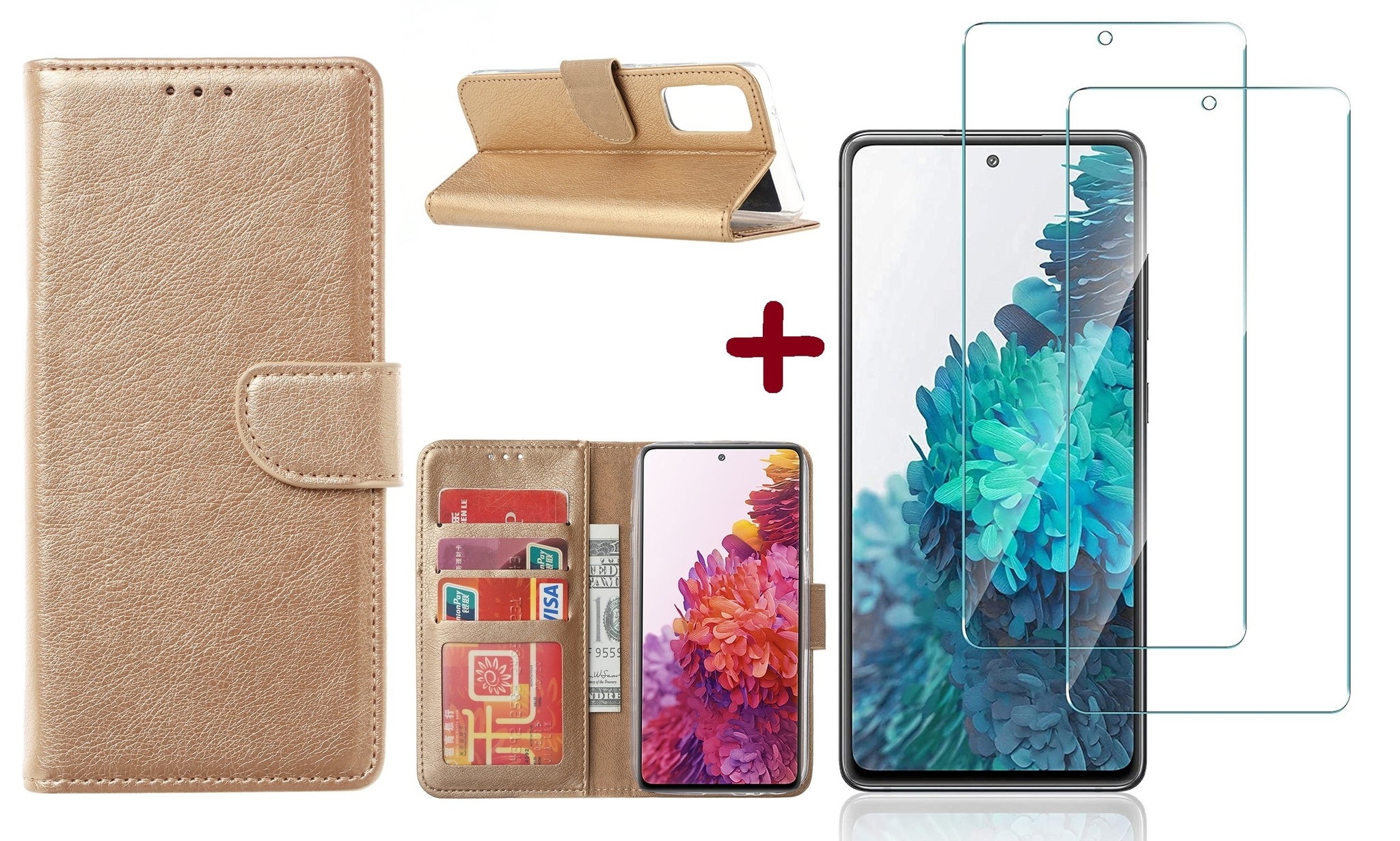 Hoesje Geschikt Voor Samsung Galaxy S20 FE 2022 hoesje - bookcase Goud - Galaxy S20 FE wallet case portemonnee hoesje - S20 FE book case hoes cover Met 2X screenprotector / tempered glass