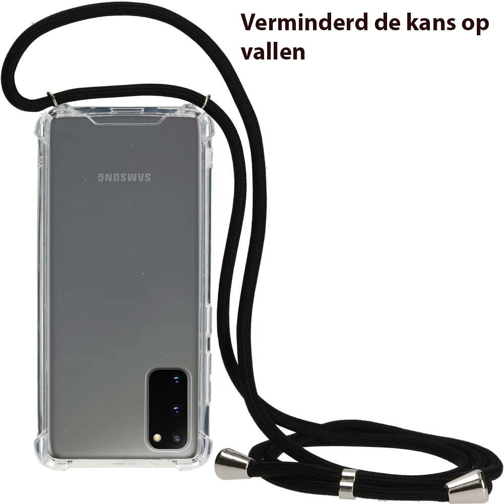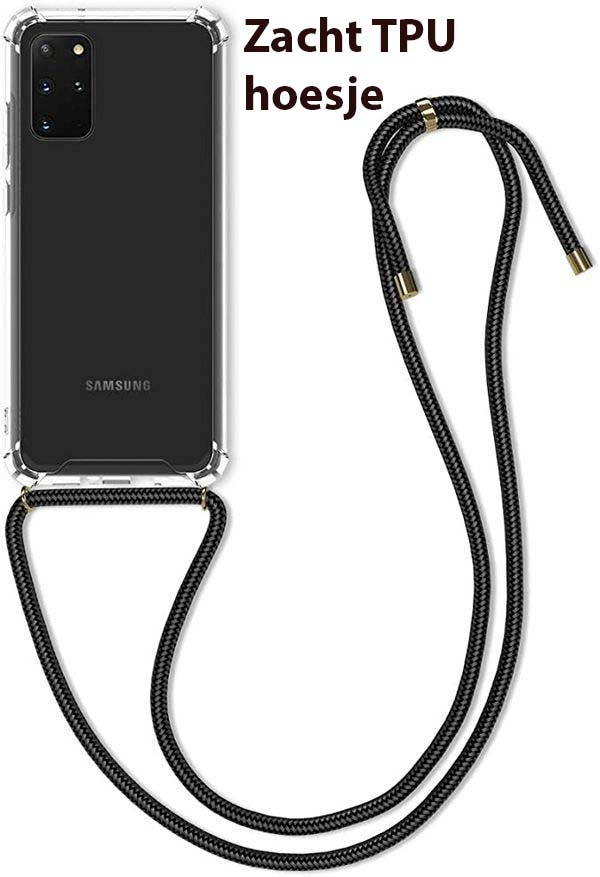 Hoesje Geschikt Voor Samsung Galaxy S20 Plus hoesje met koord transparant Siliconen Zwart – S20 Plus backcover – Hoesje Geschikt Voor Samsung Galaxy S20 Plus case – oTronica koord hoesje Hoesje Geschikt Voor Samsung Galaxy