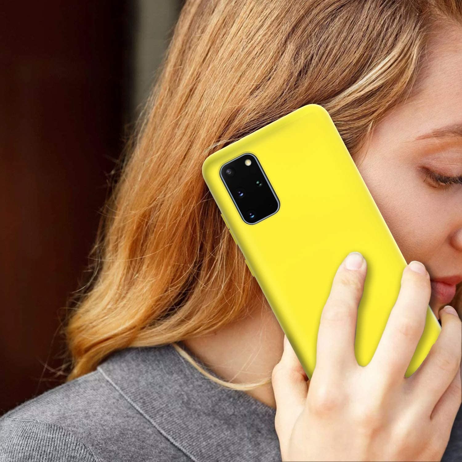 Hoesje Geschikt Voor Samsung Galaxy S20 Plus Hoesje - Fluweelzachte Microvezel Siliconen Back Cover – Geel