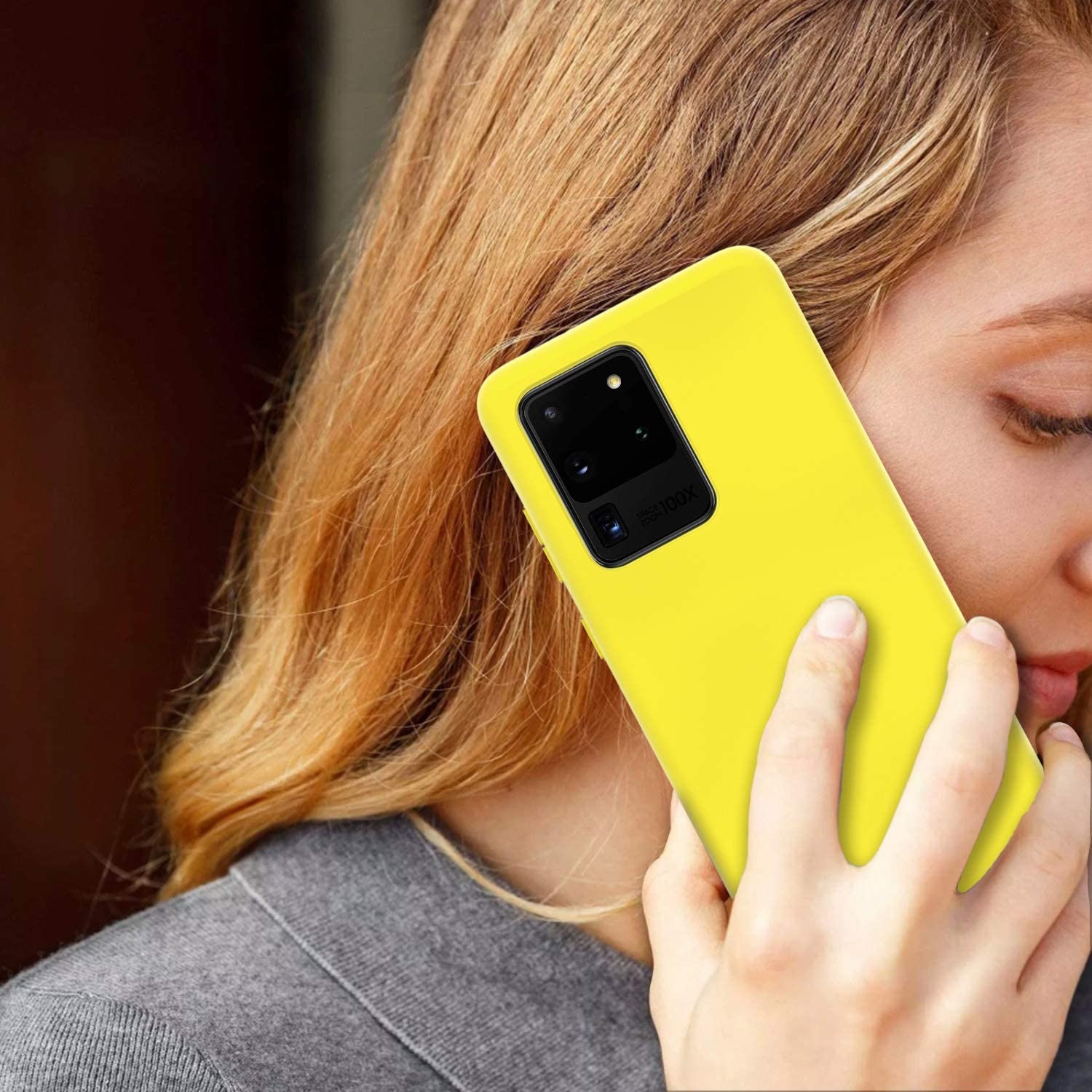 Hoesje Geschikt Voor Samsung Galaxy S20 Ultra Hoesje - Fluweelzachte Microvezel Siliconen Back Cover – Geel