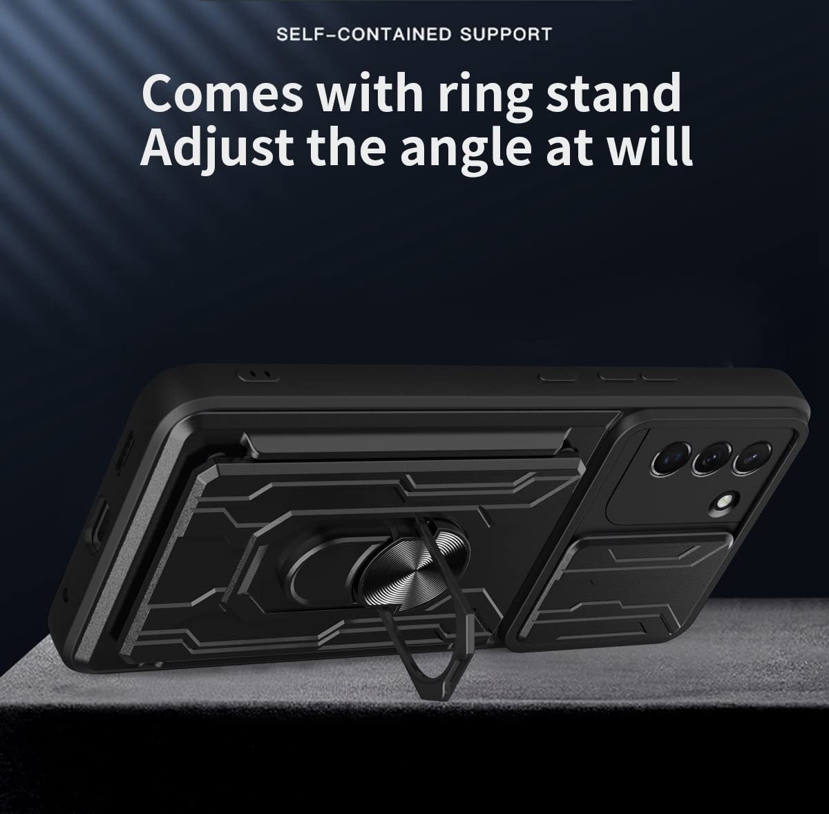 Dit unieke Samsung Galaxy S21 hoesje met kickstand camera lenz dekking en kaarthouder is de nieuwste desgin in de markt, het metaalgeval past uw telefoon met hoge precisieknipsels en de naald kijkt en voelt groot in degenen hand.