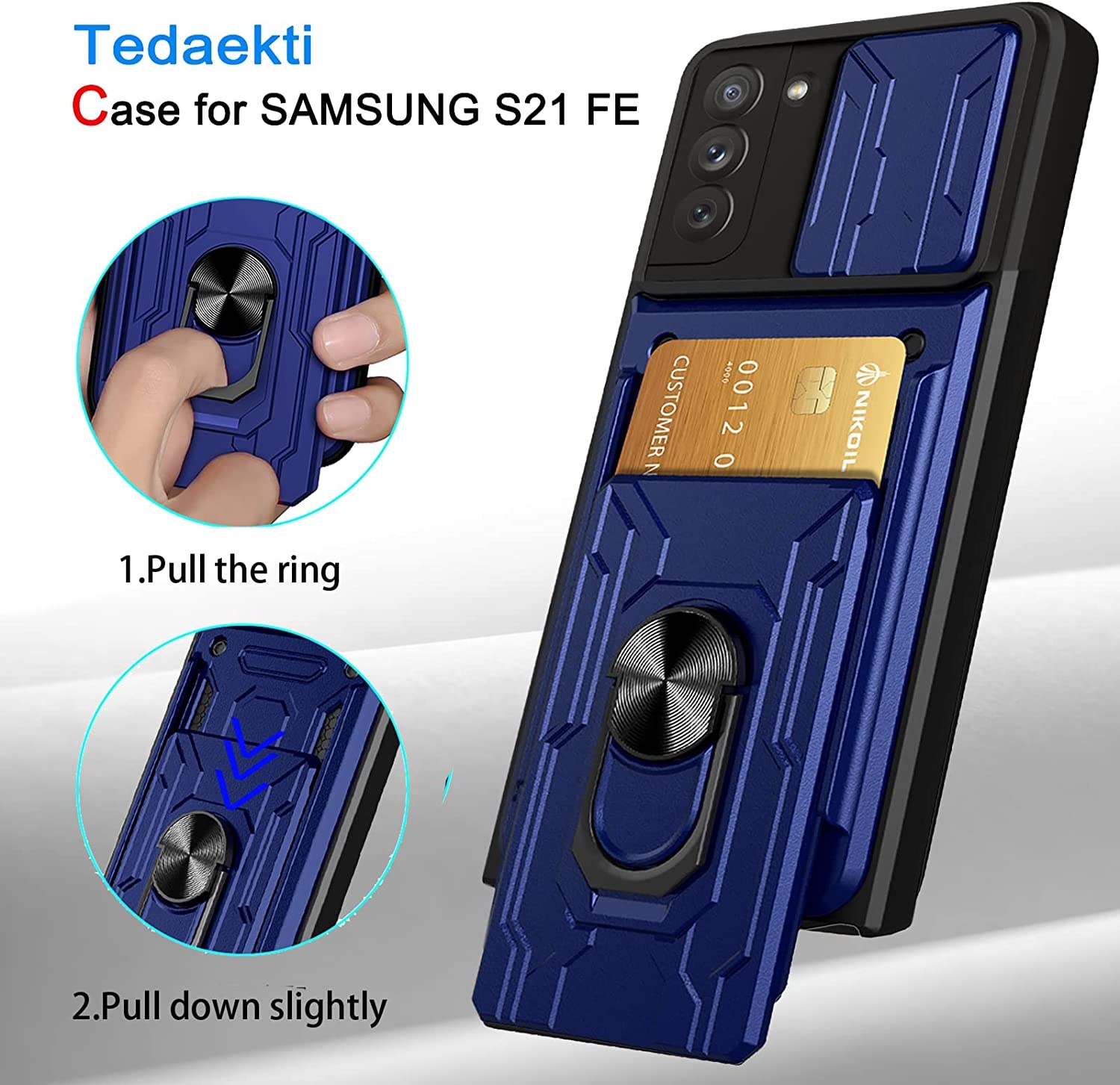 Samsung Galaxy S21 backcover hoesje met pashouder, camera lens en ringhouder