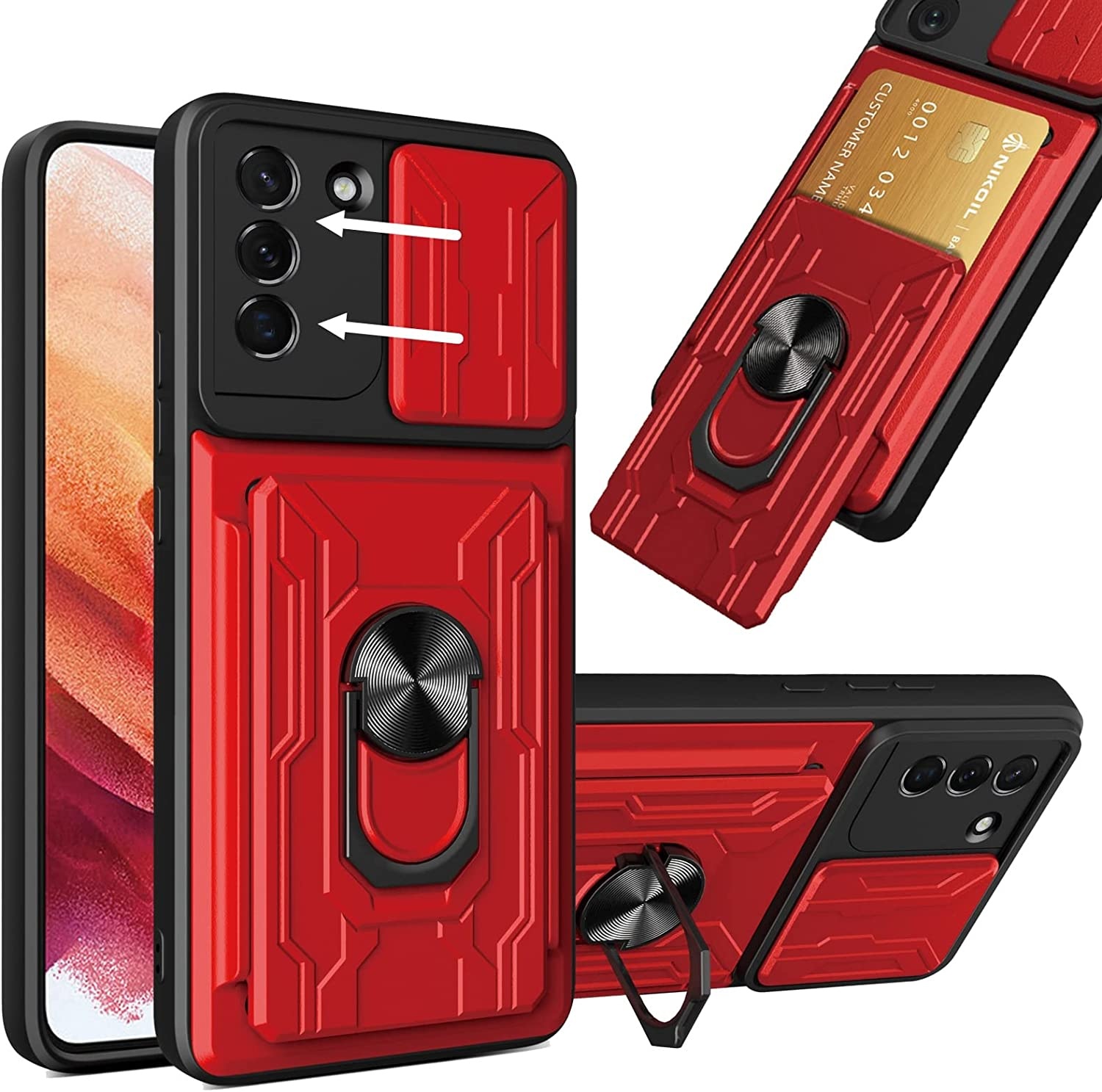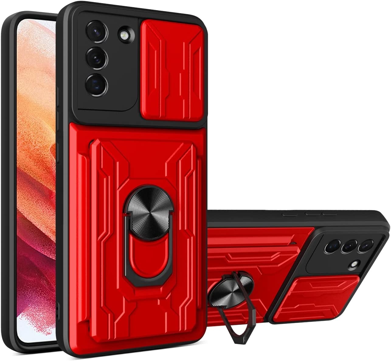 Hoesje Geschikt Voor Samsung Galaxy S21 Plus hoesje met pashouder - camera bescherming cover en ring houder – rood – oTronica