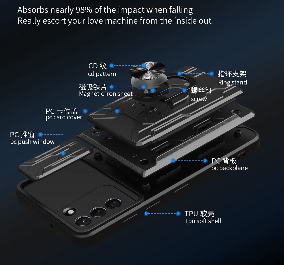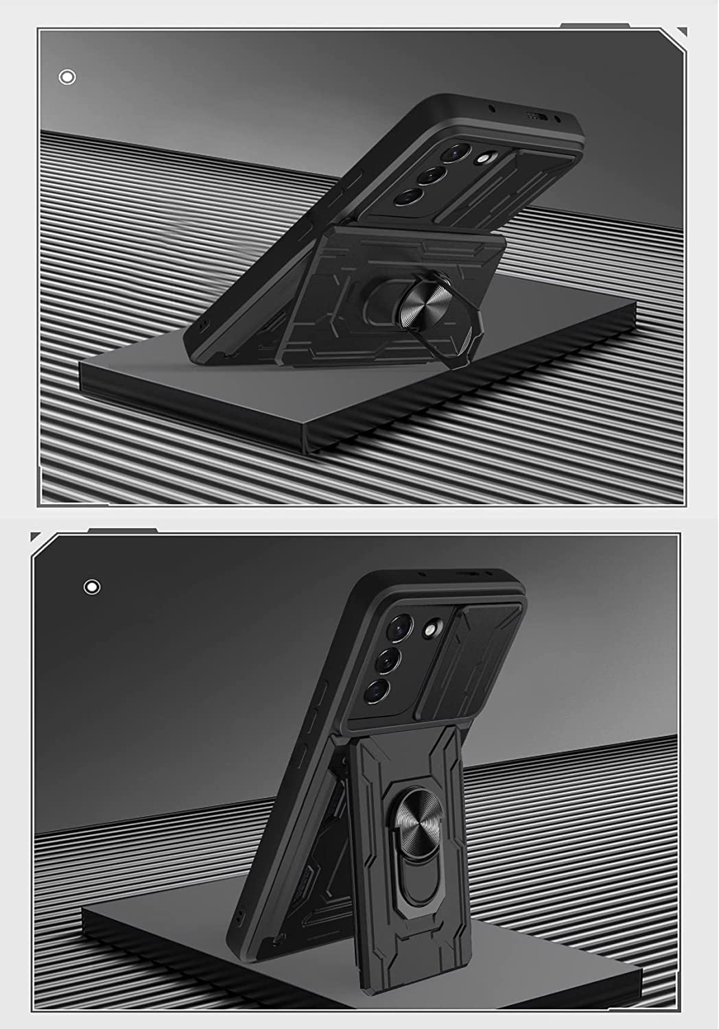 Dit Samsung Galaxy S21 Plus backcover hoesje met ringhouder, camera lens bescherming en pasjeshouder is de nieuwste design in de markt en het past bij jouw telefoon.