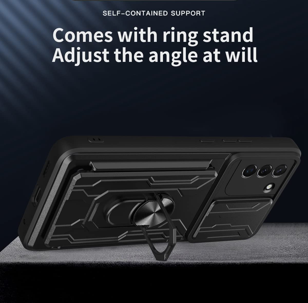 Dit Samsung Galaxy S21 Plus backcover hoesje met ringhouder, camera lens bescherming en pasjeshouder is de nieuwste design in de markt en het past bij jouw telefoon.