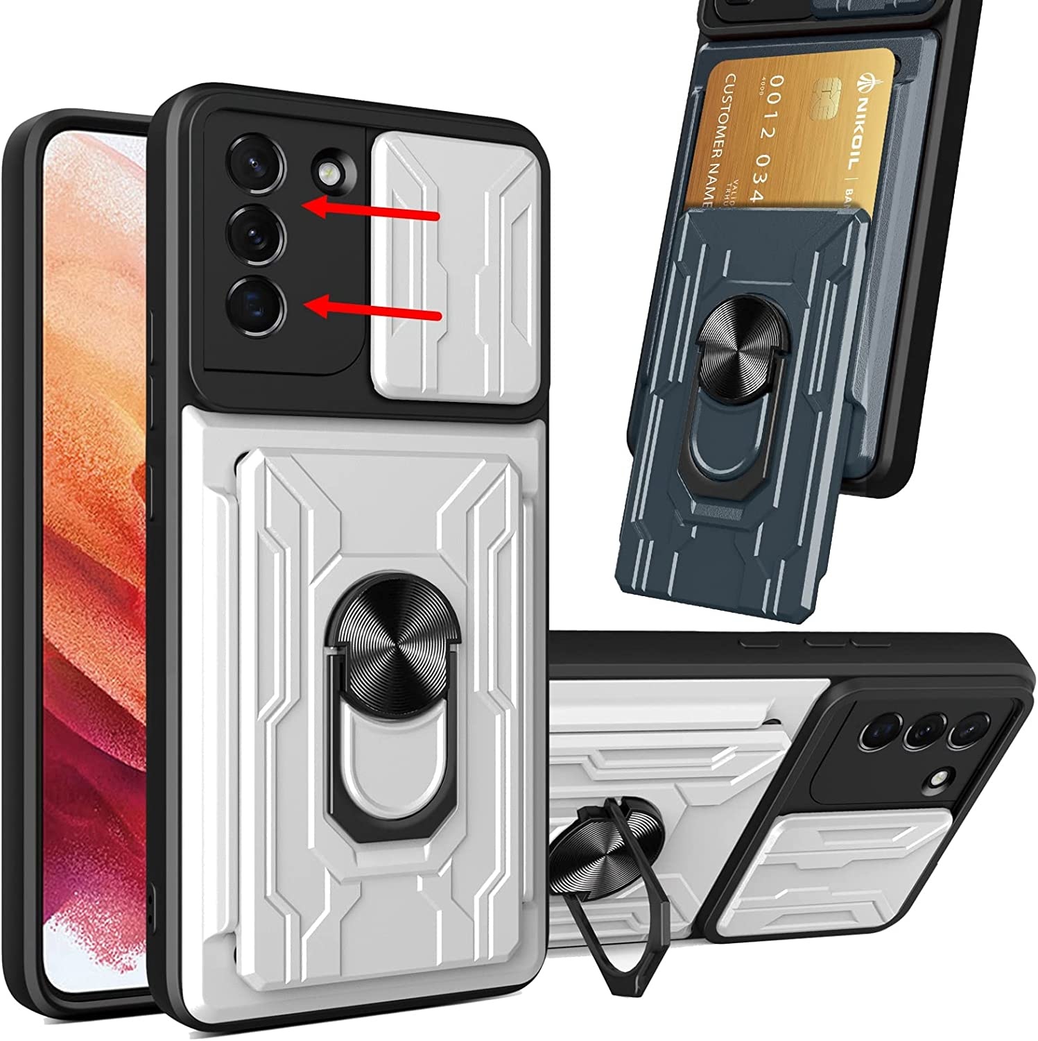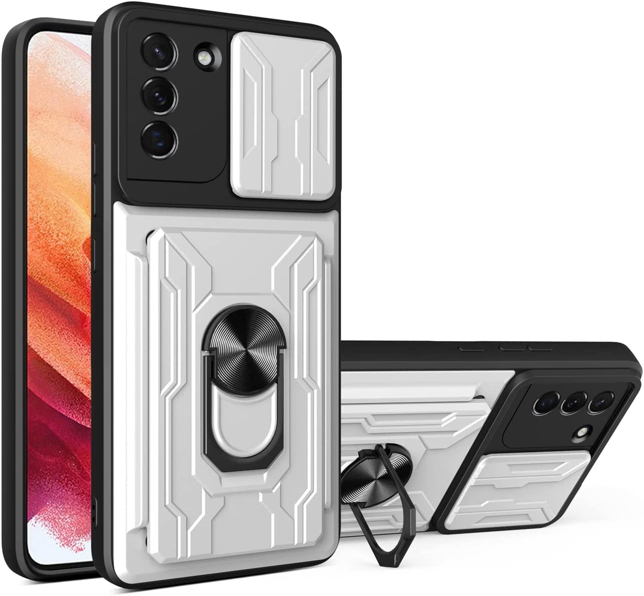Hoesje Geschikt Voor Samsung Galaxy S21 Plus hoesje met pashouder - camera bescherming cover en ring houder – Zilver – oTronica