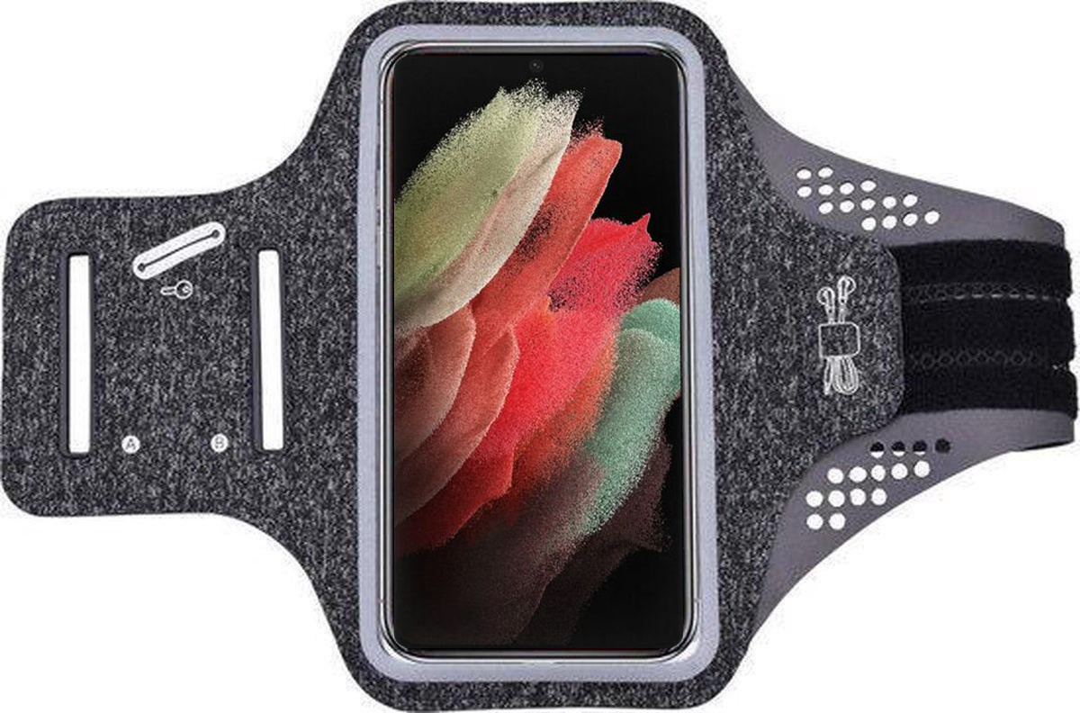 Hoesje Geschikt voor Samsung Galaxy S21 Ultra hardloop telefoonhouder – armband - sportband - van stof - Zwart