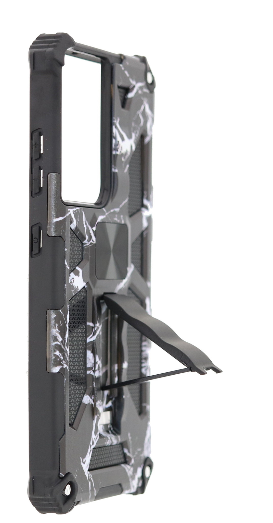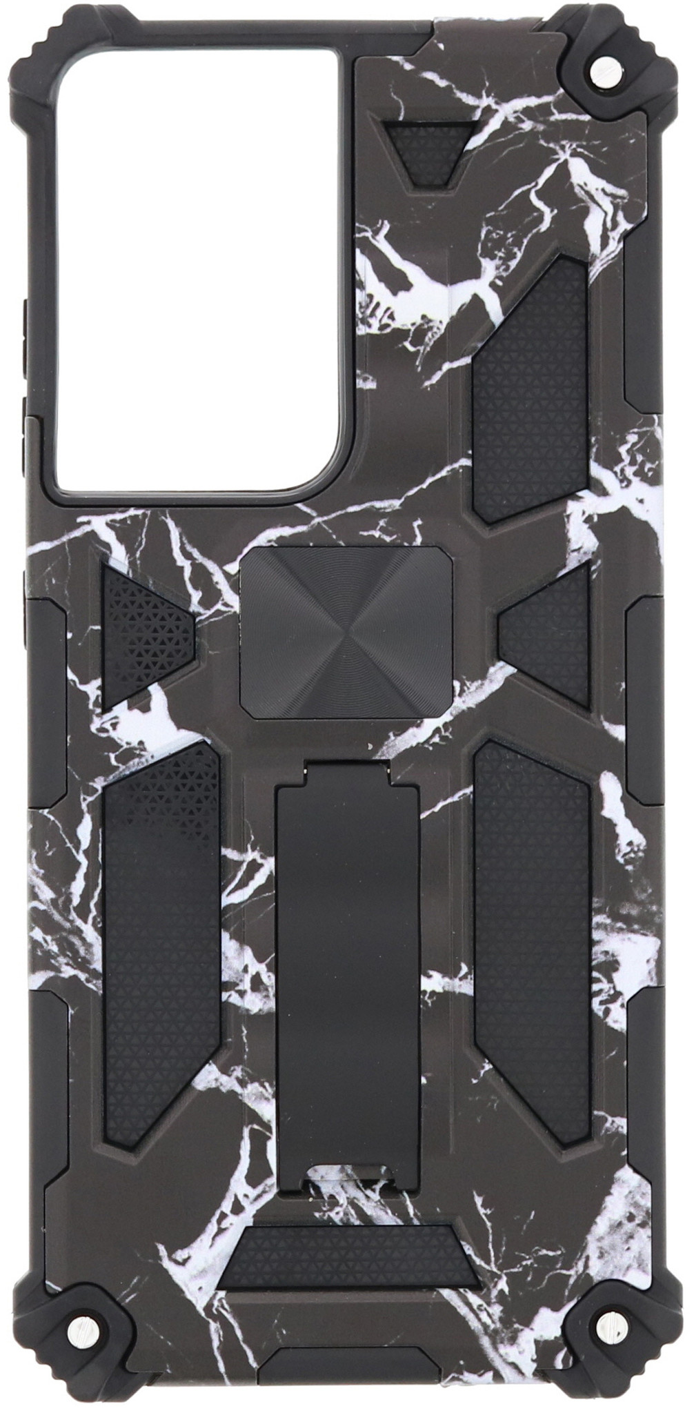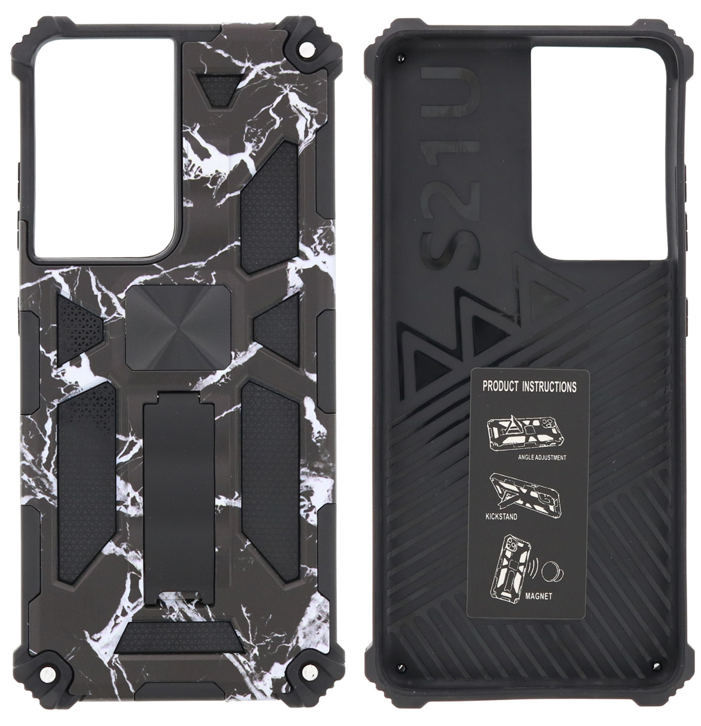 Hoesje Geschikt Voor Samsung Galaxy S21 Ultra Hoesje - Rugged Extreme Backcover Marmer Camouflage met Kickstand - Zwart