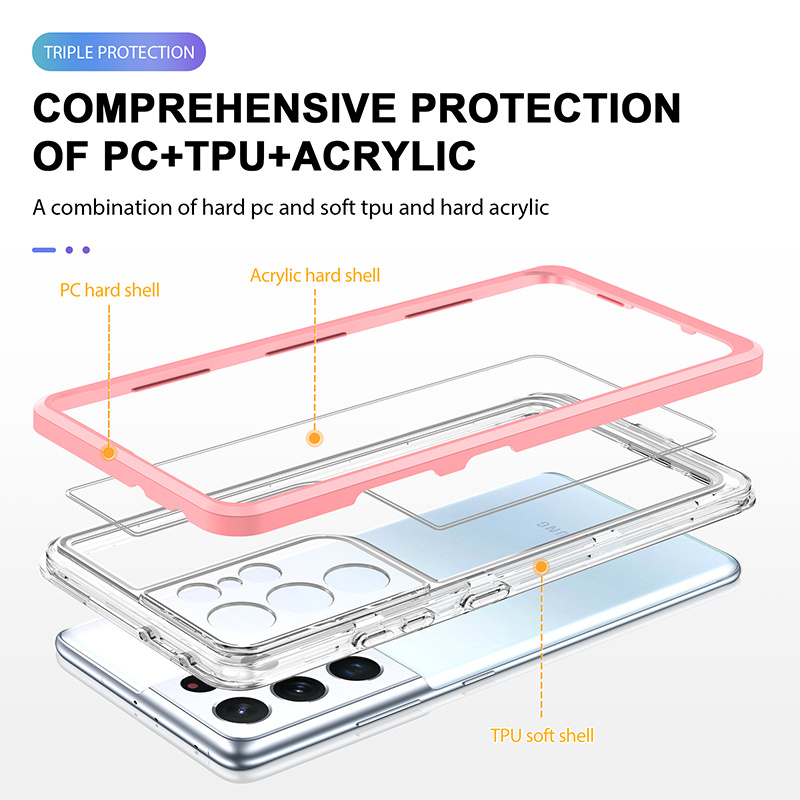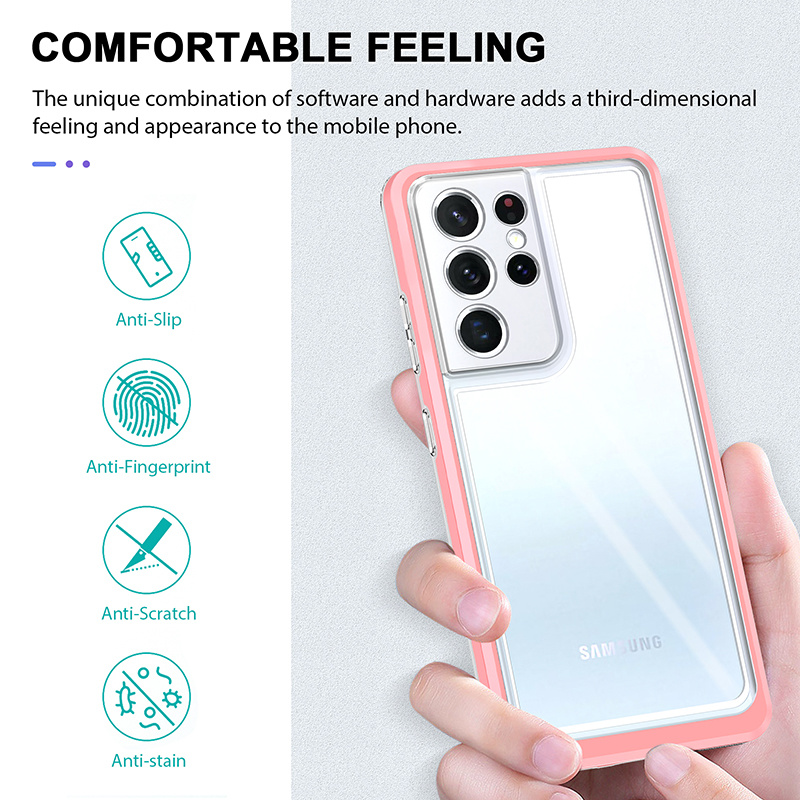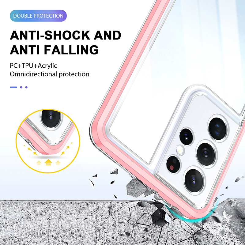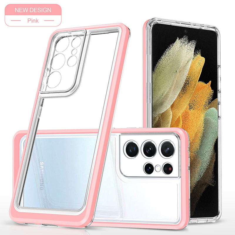 Hoesje Geschikt Voor Samsung Galaxy S21 Ultra hoesje Transparant backcover met bumper case – Roze – oTronica