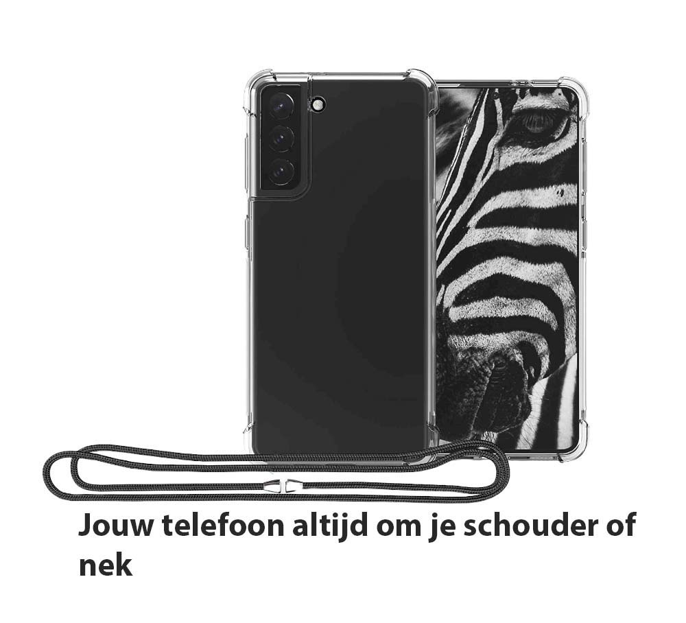 Hoesje Geschikt Voor Samsung Galaxy S22 hoesje met koord transparant Siliconen Zwart – S22 backcover – Hoesje Geschikt Voor Samsung Galaxy S22 case – oTronica koord hoesje Hoesje Geschikt Voor Samsung Galaxy