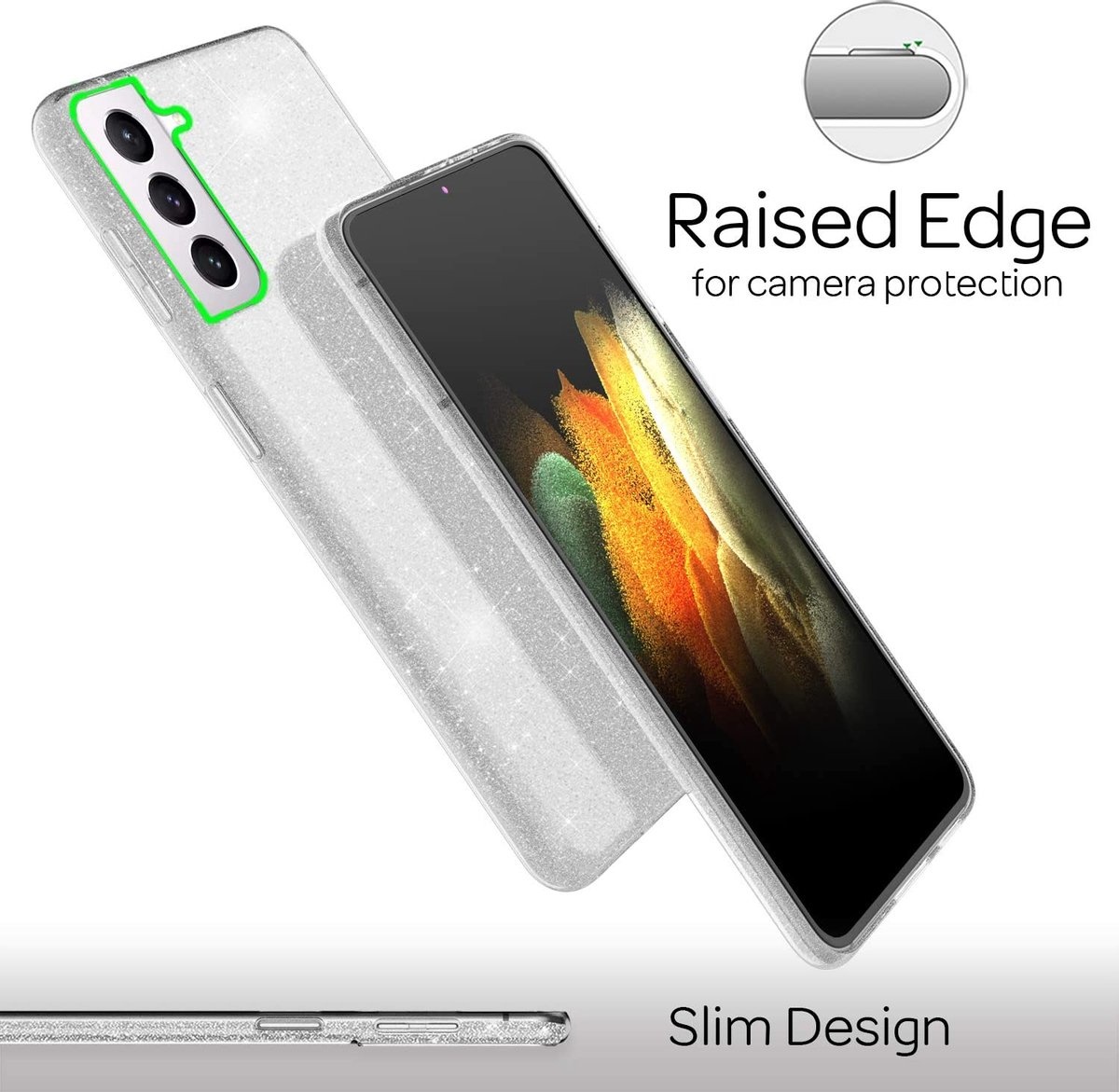 Hoesje Geschikt Voor Samsung Galaxy S22 Plus hoesje glitter backcover – Zilver – oTronica