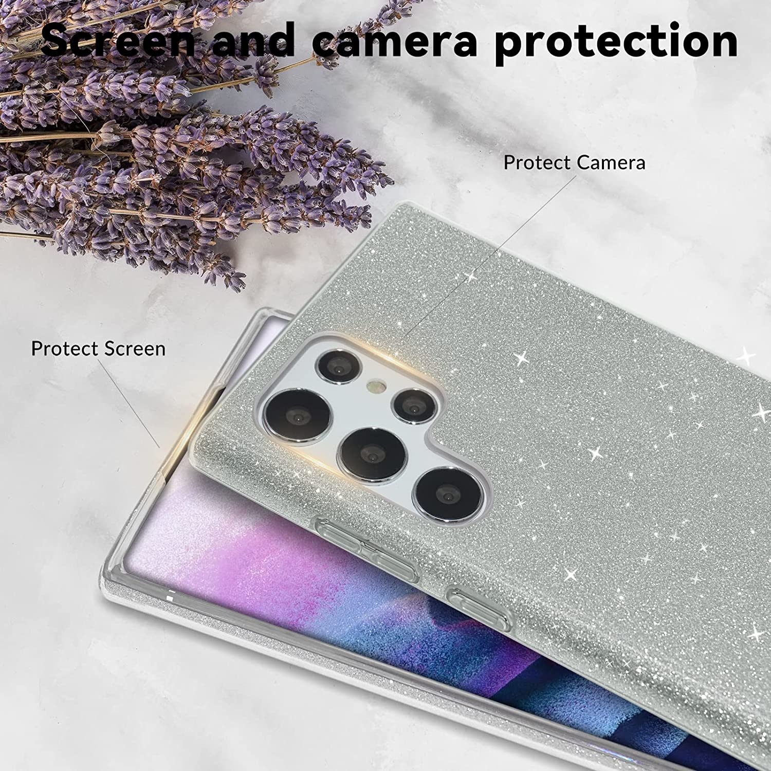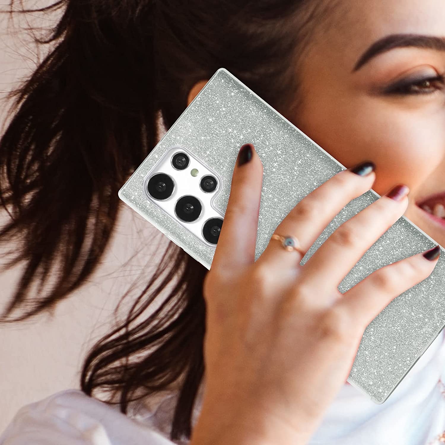 Bescherm je Samsung Galaxy S22 Ultra met deze Luxe Glitter case - back cover - Zilver - hard case