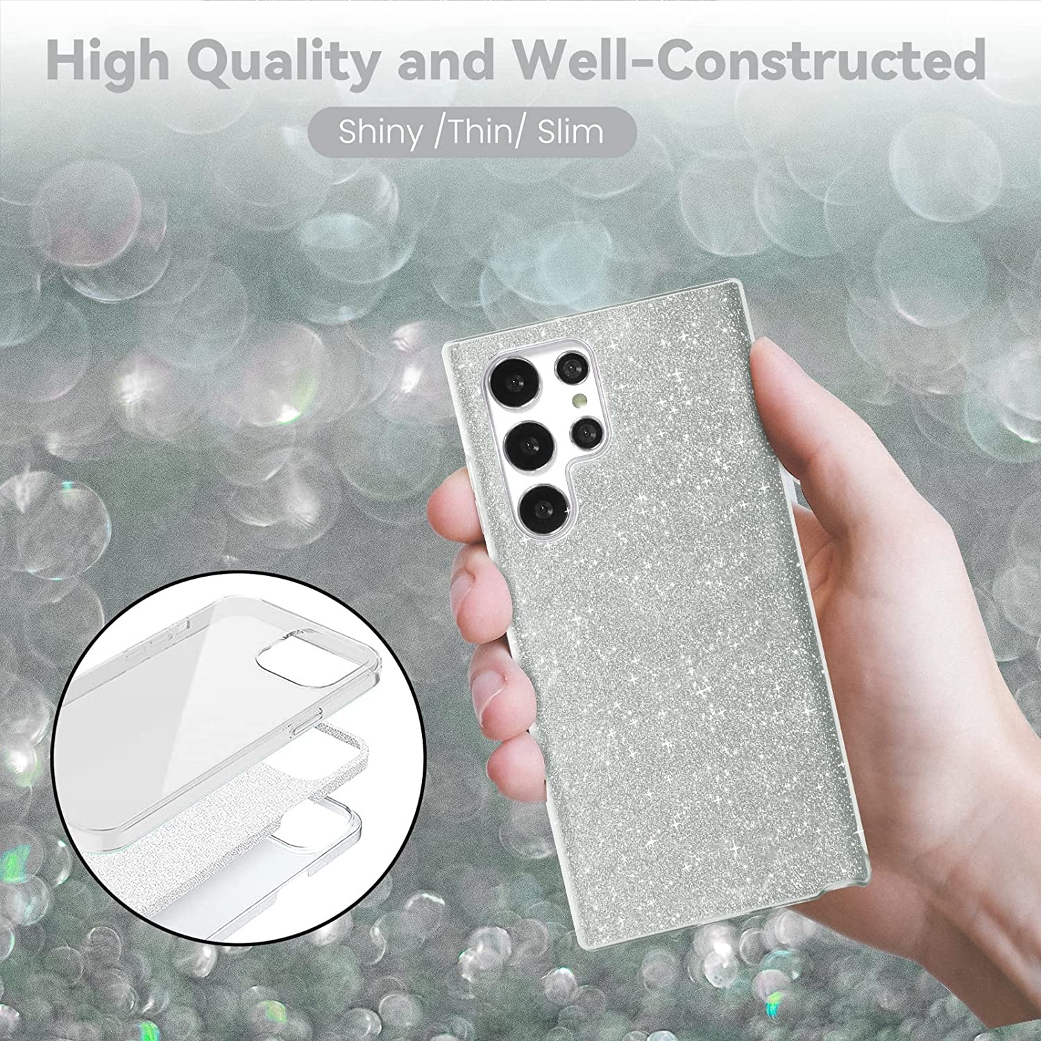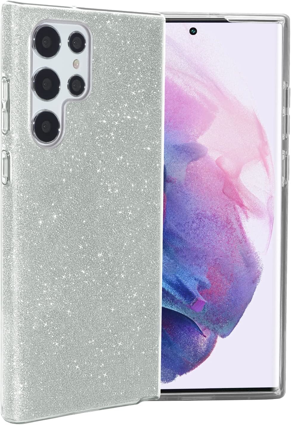 Hoesje Geschikt Voor Samsung Galaxy S22 Ultra hoesje glitter backcover – Zilver – oTronica
