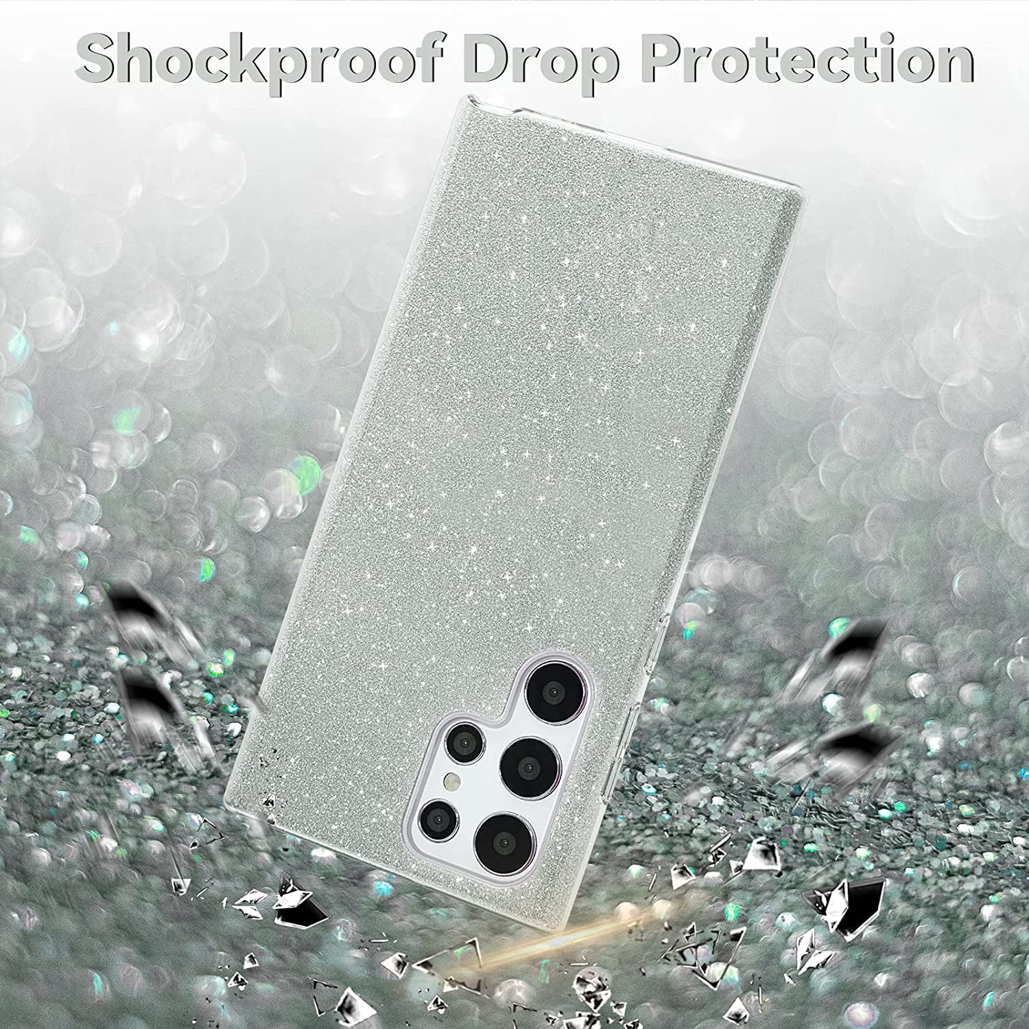 Met deze backcover is je telefoon niet alleen volledig beschermd tegen kras, val en stoot schade maar het ziet er ook nog eens super mooi uit! Extra stevige glitter case voor de Samsung Galaxy S22 Ultra.