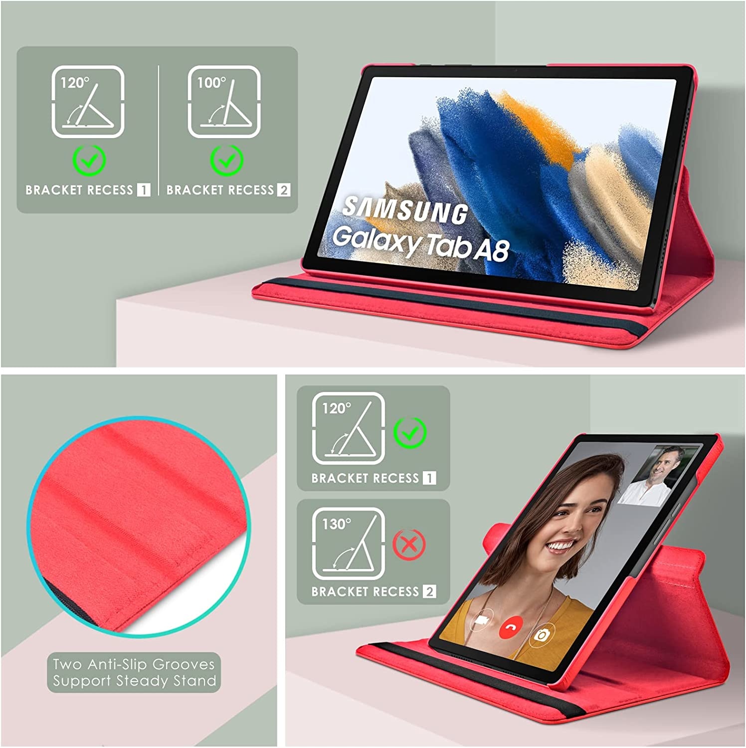 Hoes Geschikt voor Samsung Galaxy Tab A8 hoes – Hoes Geschikt voor Samsung Galaxy Tab A8 (2021 / 2022) hoes – 360° draaibaar tablethoes – Rood