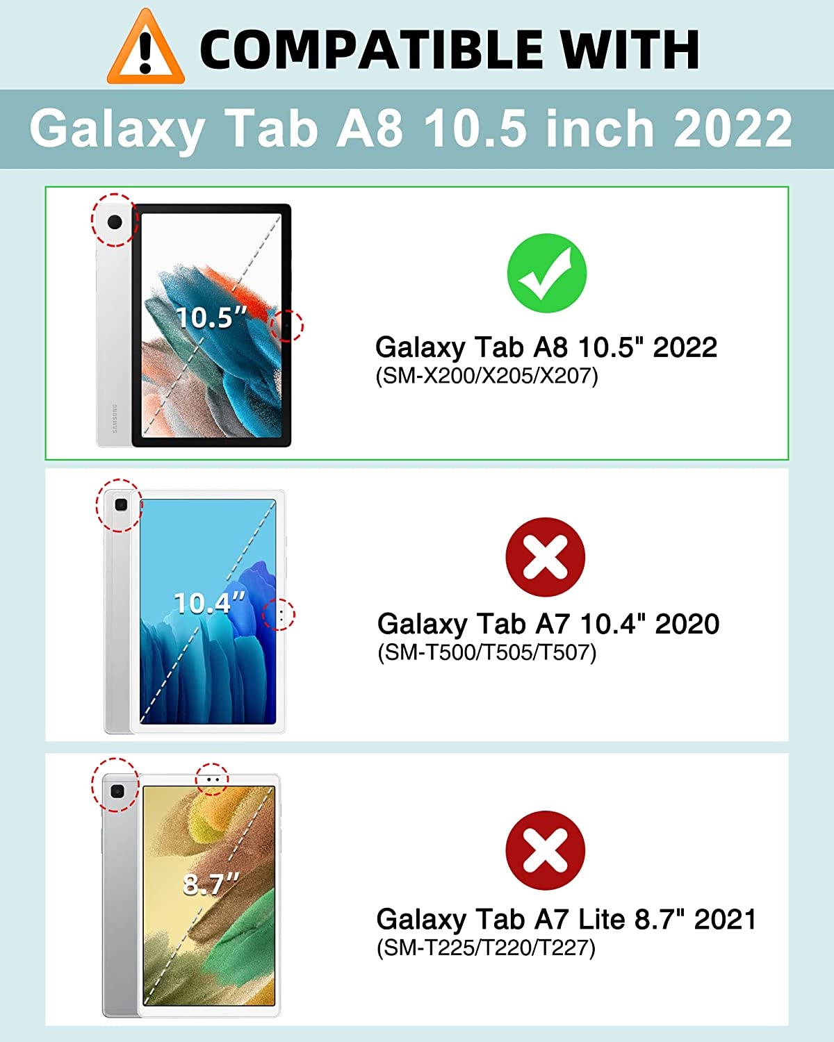 - Compatibel met Samsung Galaxy Tab A8 (2021 / 2022) 10.5 Inch met modelnummer(s): SM-X200 en SM-X205.
