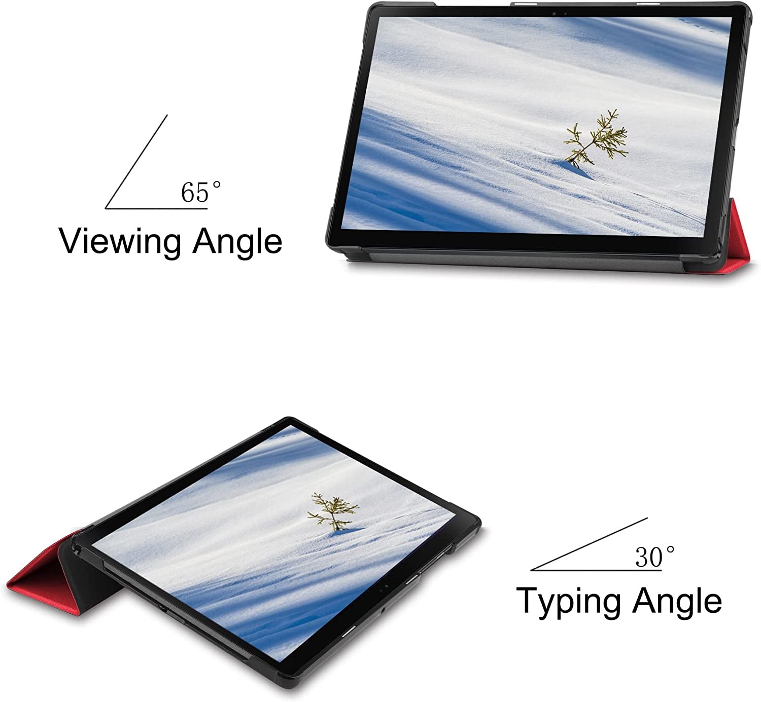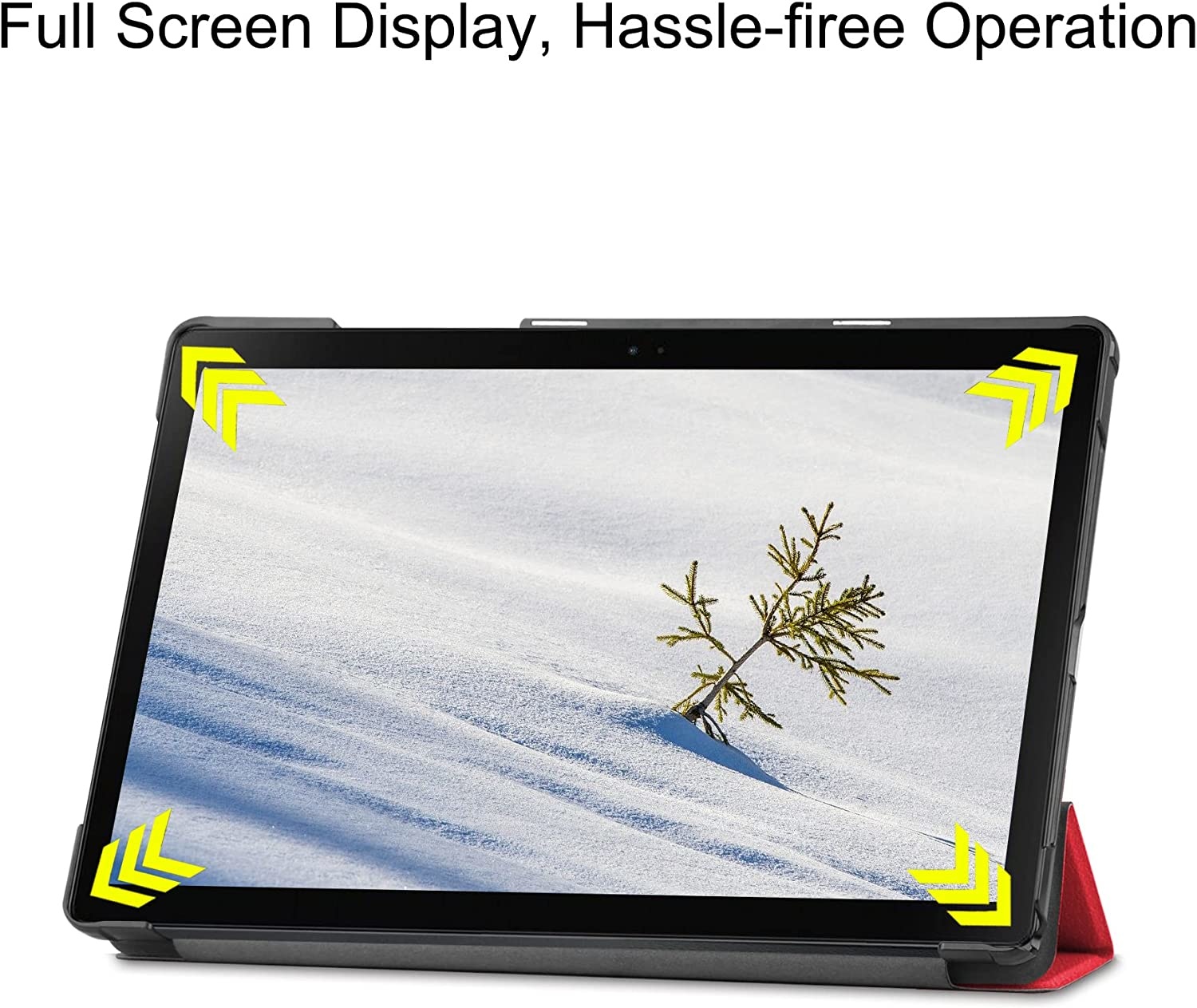 Zoals de naam al doet vermoeden kun je de tablet, wanneer je deze in de Tri-fold book case cover hebt gedaan, als standaard gebruiken. Dat is natuurlijk supermooi want als je bijvoorbeeld aan het gamen bent of je wilt een film kijken, kun je de tablet hoog of laag in een positie zoals jij die graag wenst.