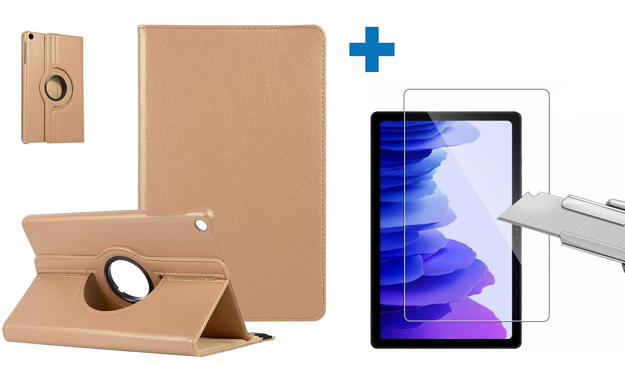 Screenprotector Geschikt voor Samsung Galaxy Tab A7 Hoes - (2020/2022) - 360 graden draaibaar case Goud + screenprotector gehard glas