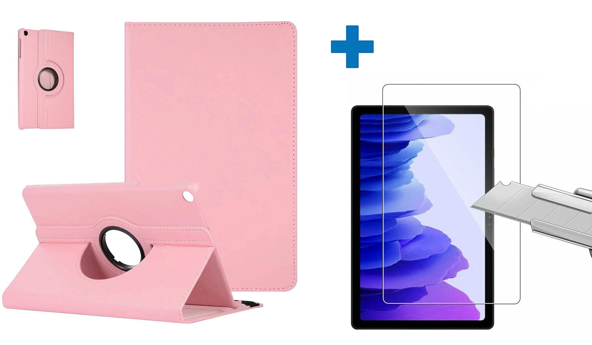 Screenprotector Geschikt voor Samsung Galaxy Tab A7 Hoes - (2020/2022) - 360 graden draaibaar case Licht Roze + screenprotector gehard glas