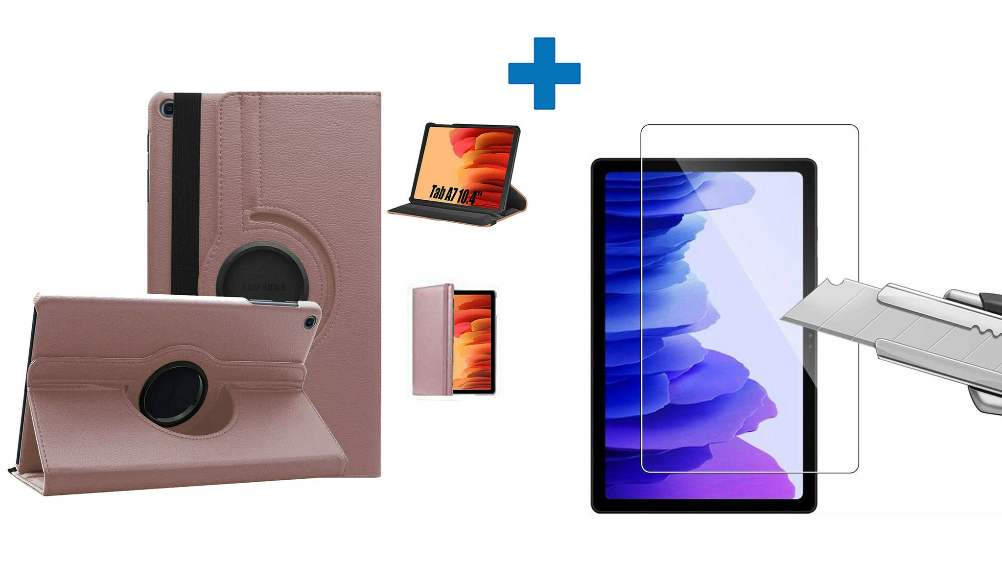 Screenprotector Geschikt voor Samsung Galaxy Tab A7 Hoes - (2020/2022) - 360 graden draaibaar case Rose Goud + screenprotector gehard glas