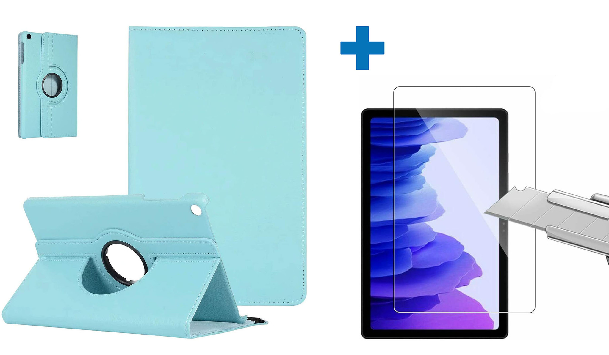 Screenprotector Geschikt voor Samsung Galaxy Tab A7 Hoes - (2020/2022) - 360 graden draaibaar case Licht Blauw + screenprotector gehard glas