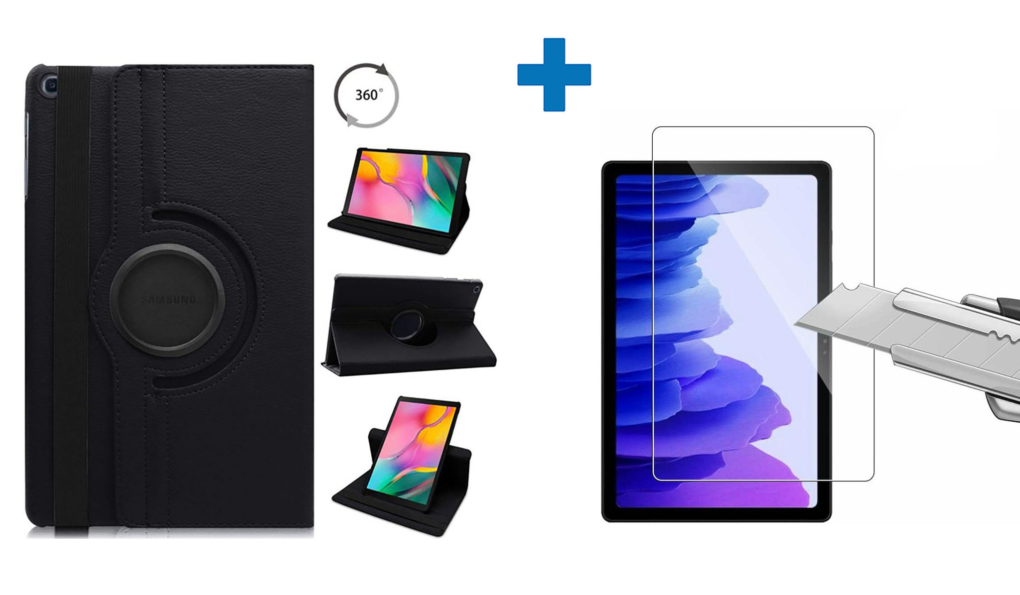 Screenprotector Geschikt voor Samsung Galaxy Tab A7 Hoes - (2020/2022) - 360 graden draaibaar case - Zwart + screenprotector gehard glas