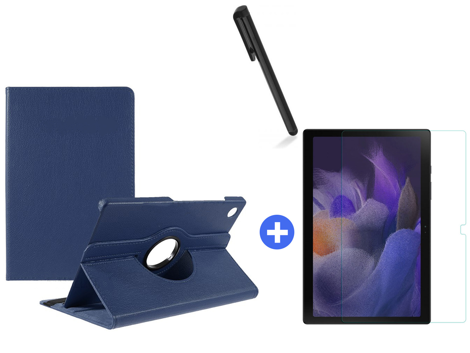 Hoesje Geschikt Voor Samsung Galaxy Tab A8 Hoes 10.5 inch 2021 draaibare hoesje - Donker Blauw + tempered glass screenprotector + stulus pen