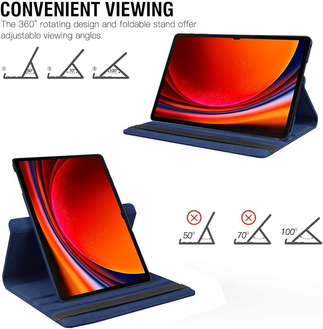 Hoes Geschikt voor Samsung Galaxy Tab S9 / S9 FE hoes Donker Blauw – Hoes Geschikt voor Samsung Galaxy Tab S9 / S9 FE tablet hoes – 360° draaibaar bookcase - Ntech