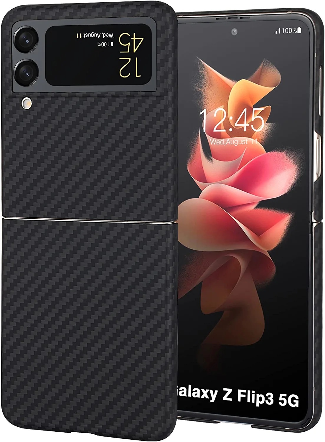 Je Samsung Galaxy Z Flip 3 is perfect beschermd met deze carbon fiber textuur plastic hoesje. De toestel is gemakkelijk in het hoesje te plaatsen. Het beschermt de achterkant, randen en lens van de telefoon. Het hoesje is dun en licht in gewicht maar super sterk.