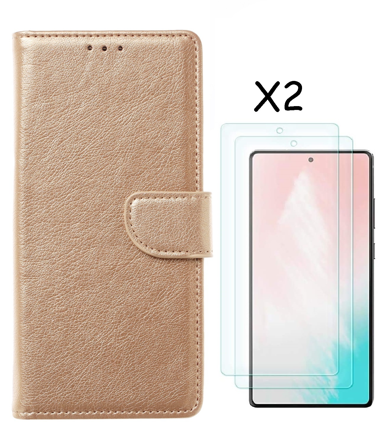 Hoesje Geschikt Voor Samsung Galaxy S20 FE 2022 hoesje bookcase Goud - Galaxy S20 FE bookcase wallet case portemonnee hoesje - Hoesje Geschikt Voor Samsung Galaxy S20 Fe 2022 screenprotector / 2X tempered glass