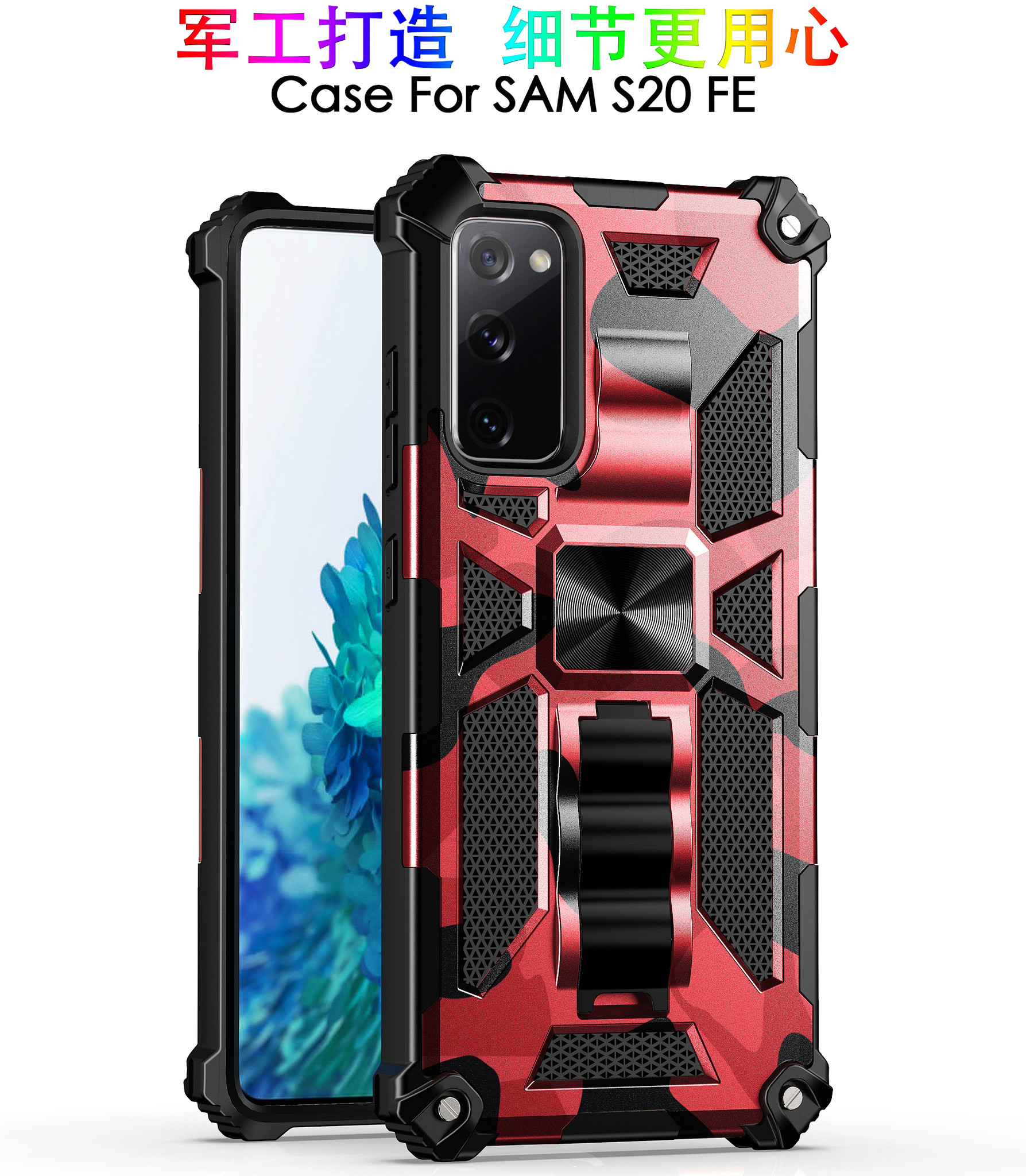 Samsung S20 FE hoesje backcover armor case met ring houder Camouflage rood
