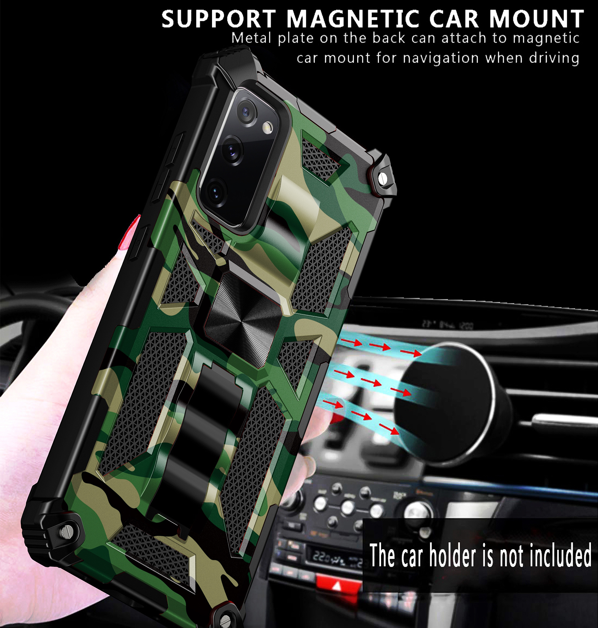Samsung S20 FE hoesje backcover armor case met ring houder Camouflage groen