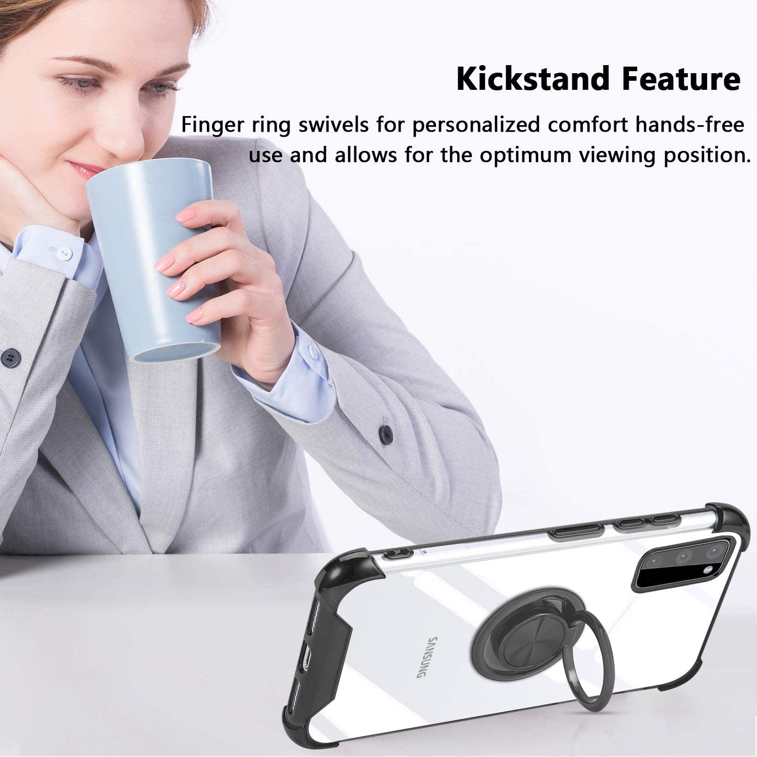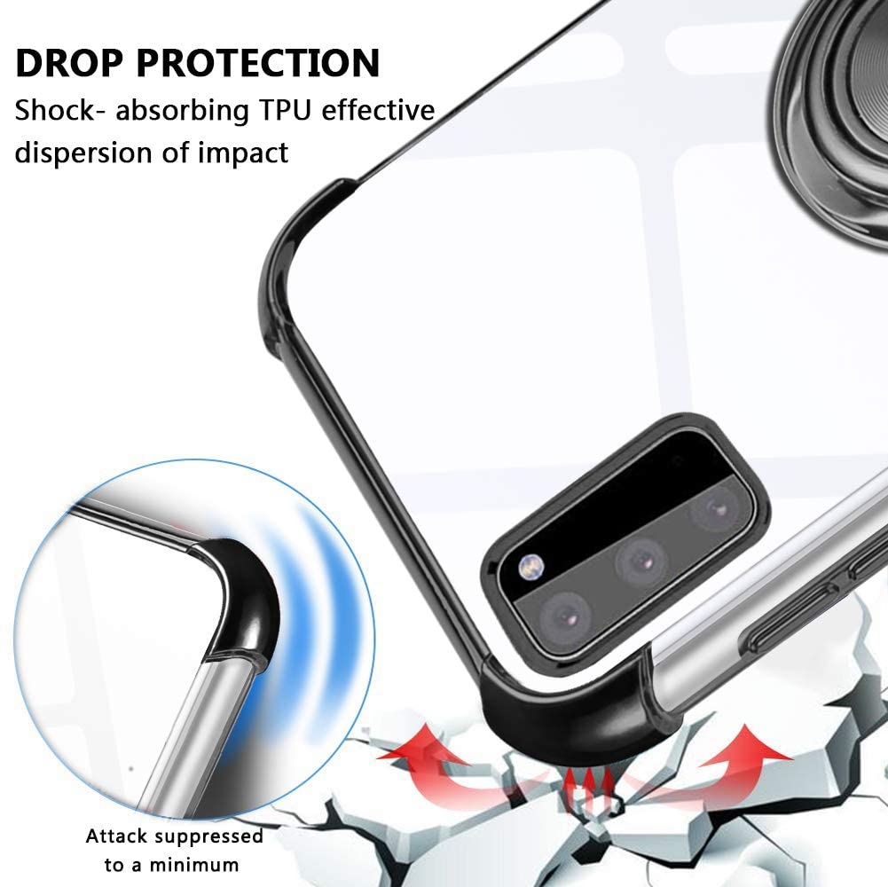 Hoesje Geschikt Voor Samsung Galaxy S20 Plus hoesje silicone met ringhouder Back Cover Case - Transparant/Zwart
