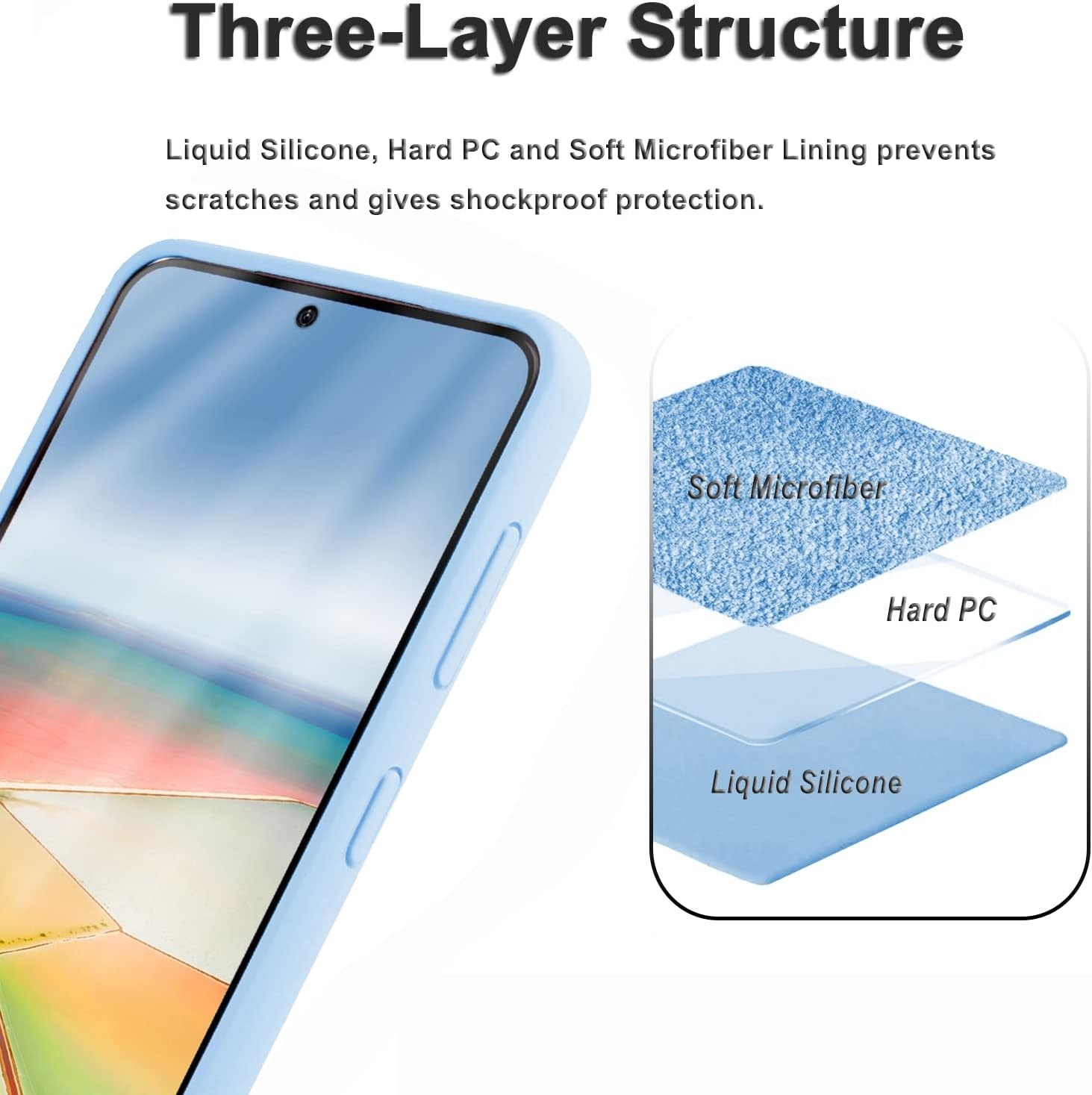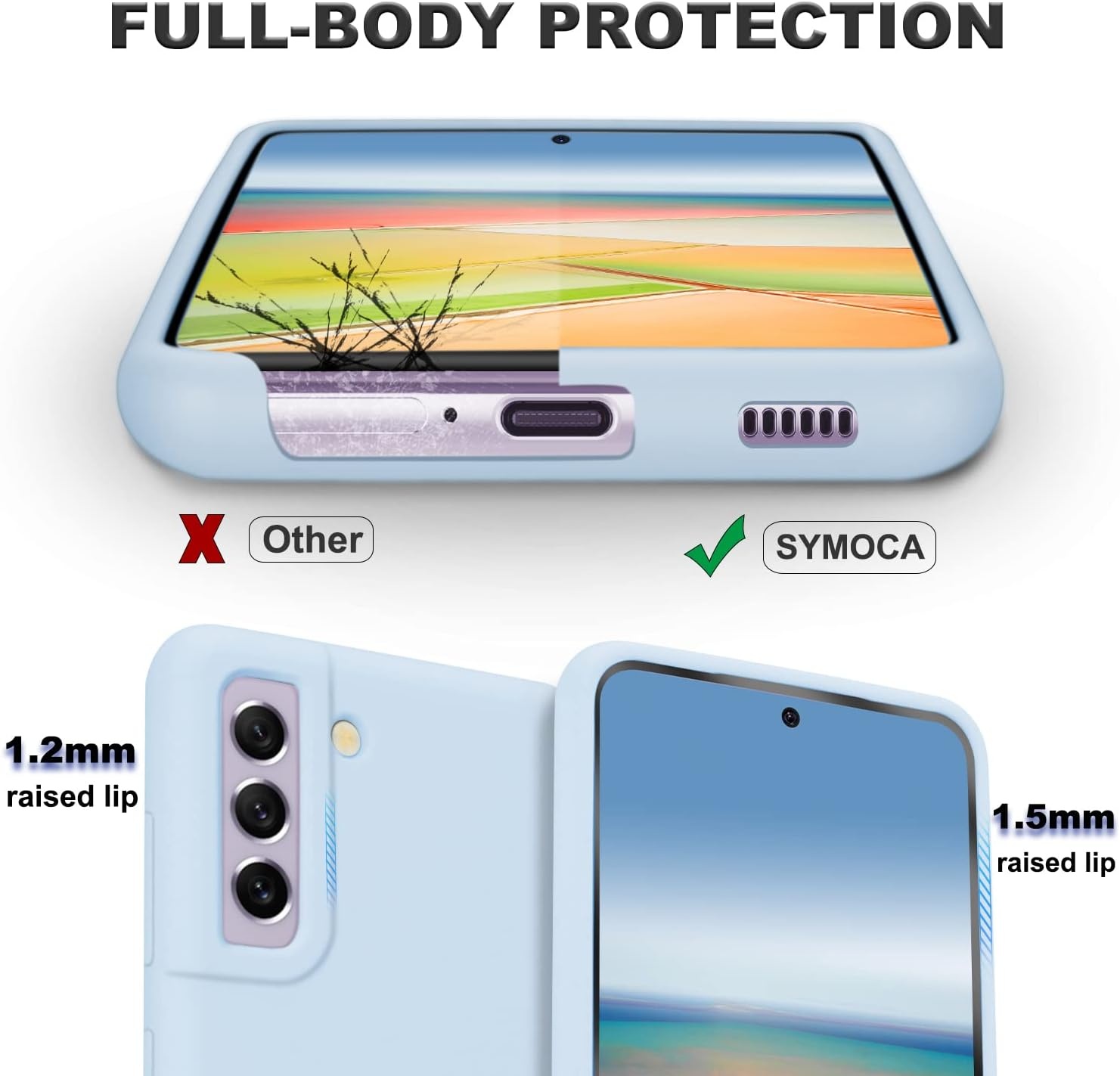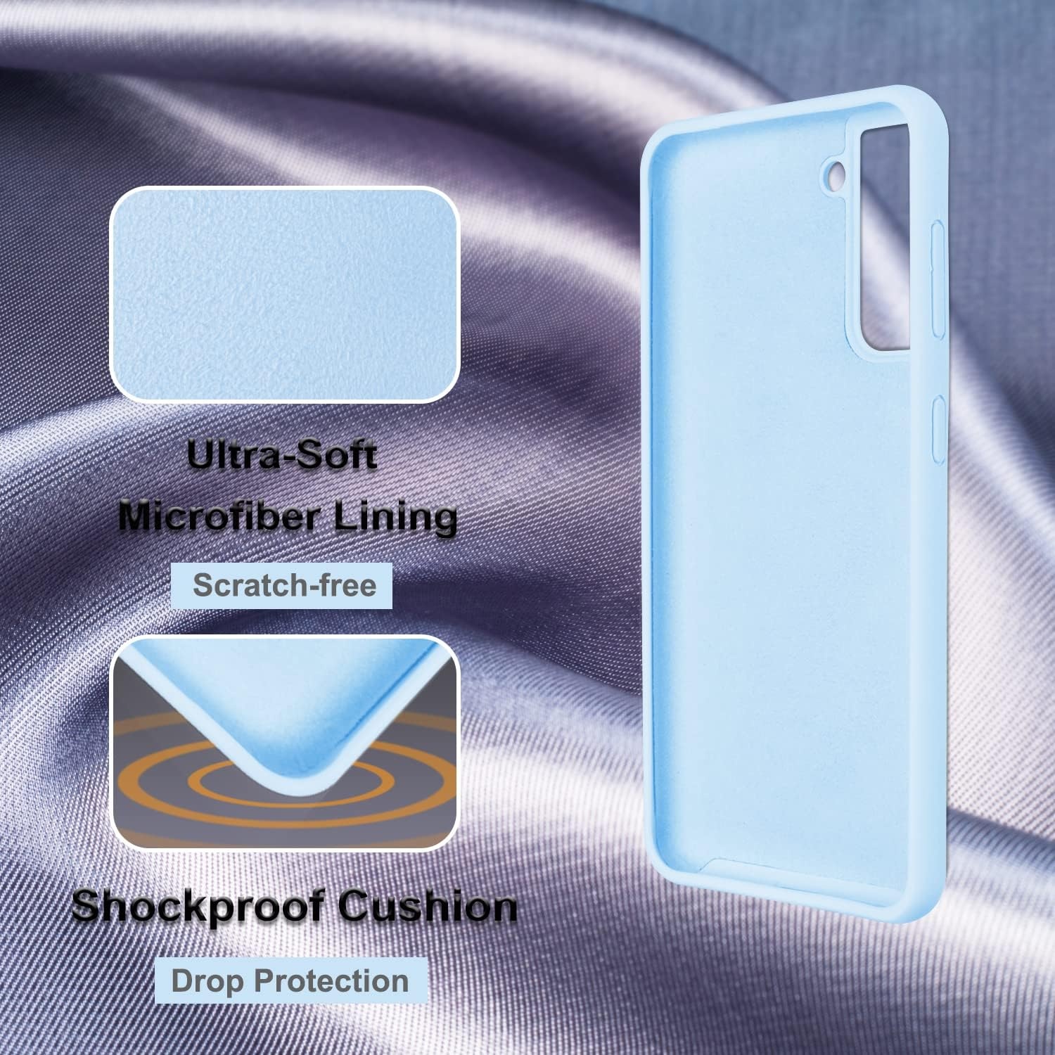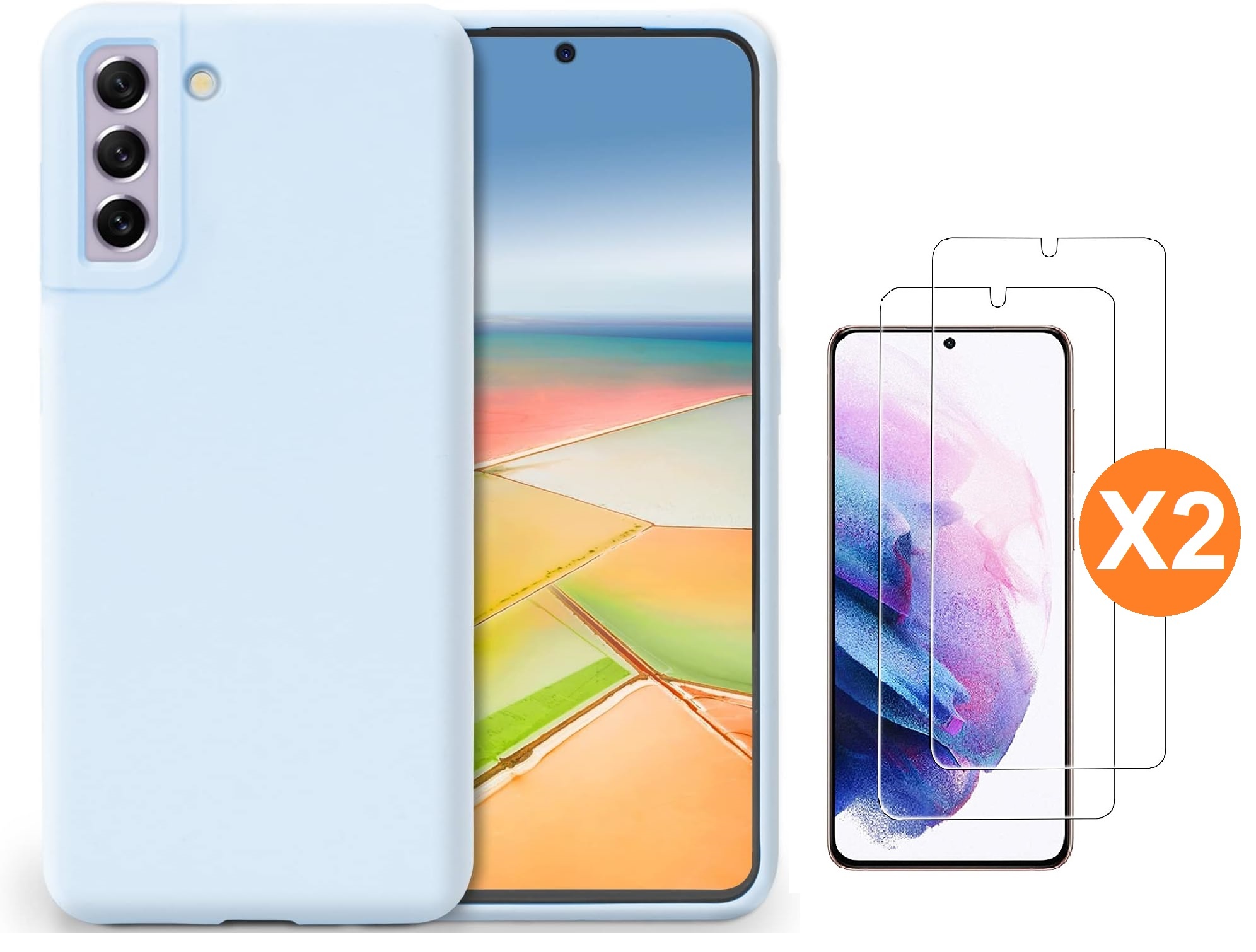 Hoesje Geschikt Voor Samsung Galaxy S21 FE Hoesje siliconen Licht Blauw zacht siliconen hoesje TPU backcover - Met Screenprotector - 2 stuks