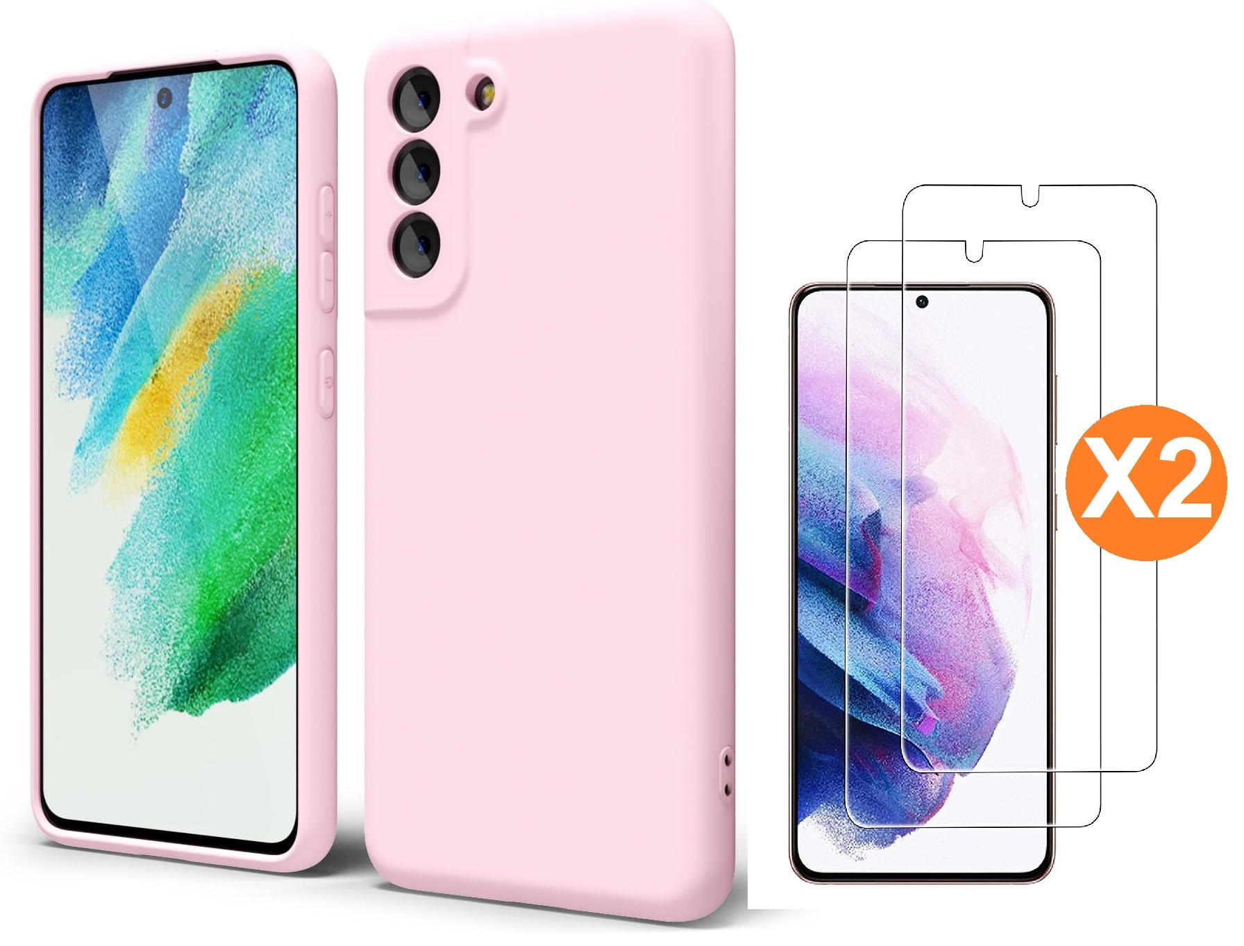 Hoesje Geschikt Voor Samsung Galaxy S21 FE Hoesje siliconen Licht Roze zacht siliconen hoesje TPU backcover - Met Screenprotector - 2 stuks