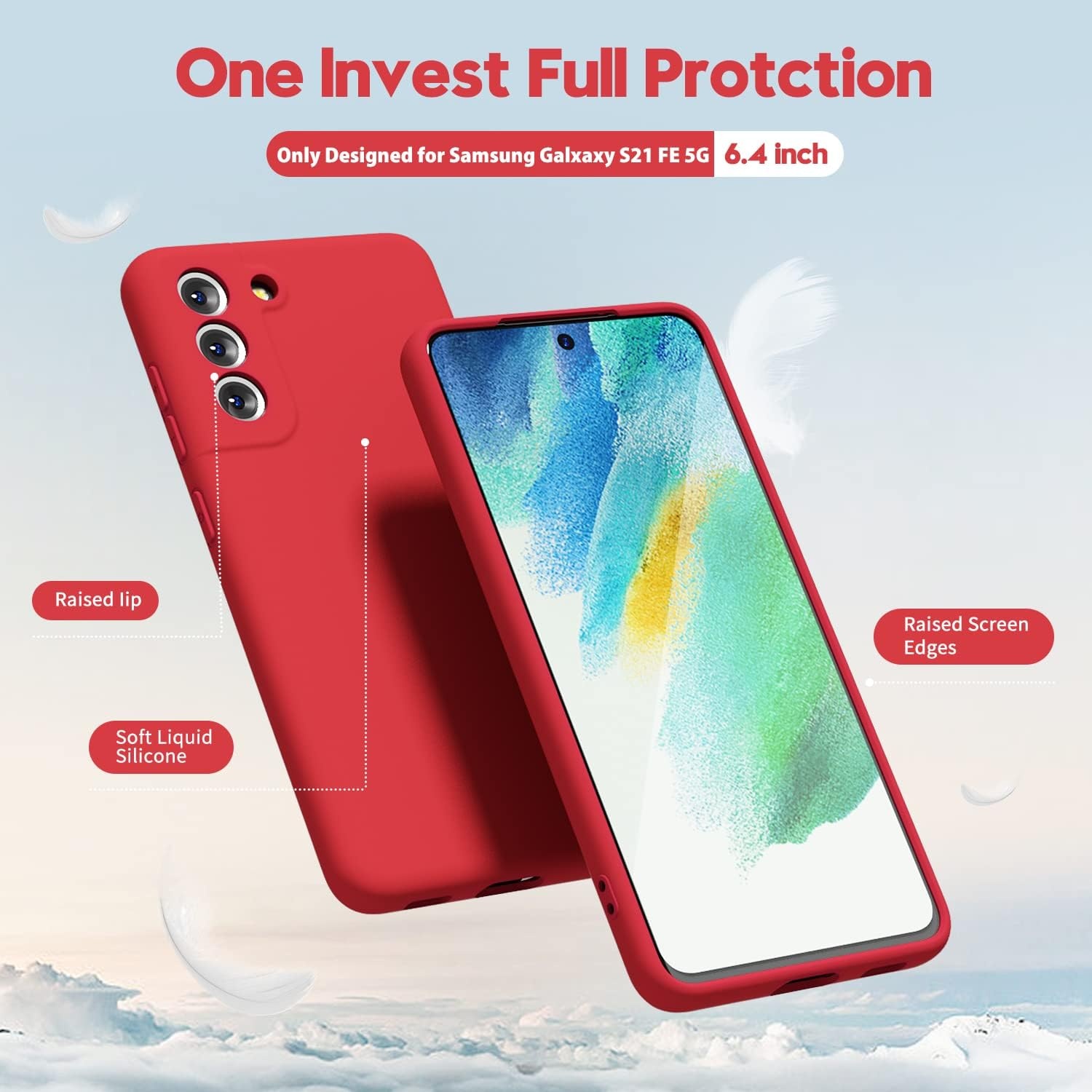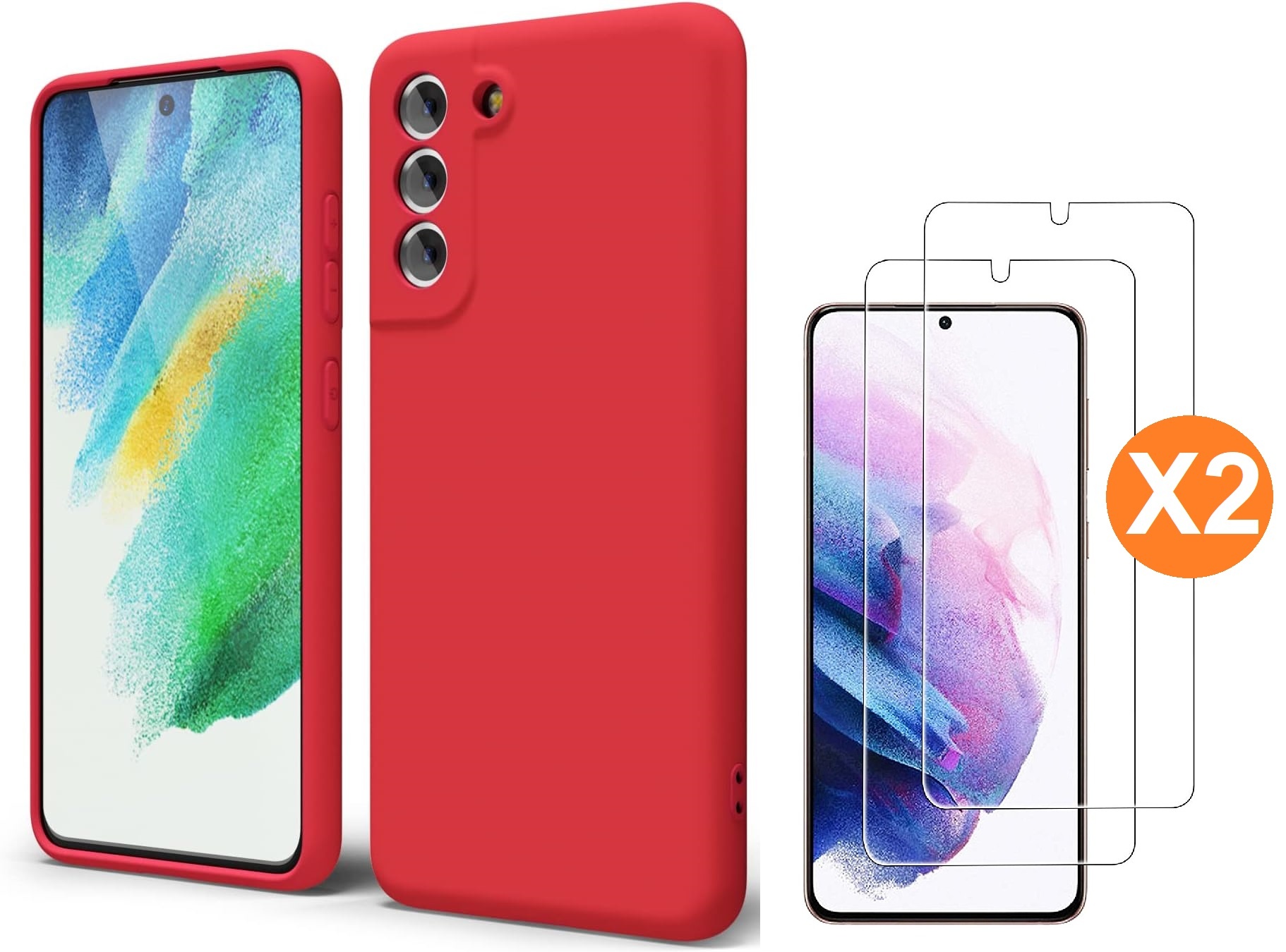 Hoesje Geschikt Voor Samsung Galaxy S21 FE Hoesje siliconen Rood zacht siliconen hoesje TPU backcover - Met Screenprotector - 2 stuks