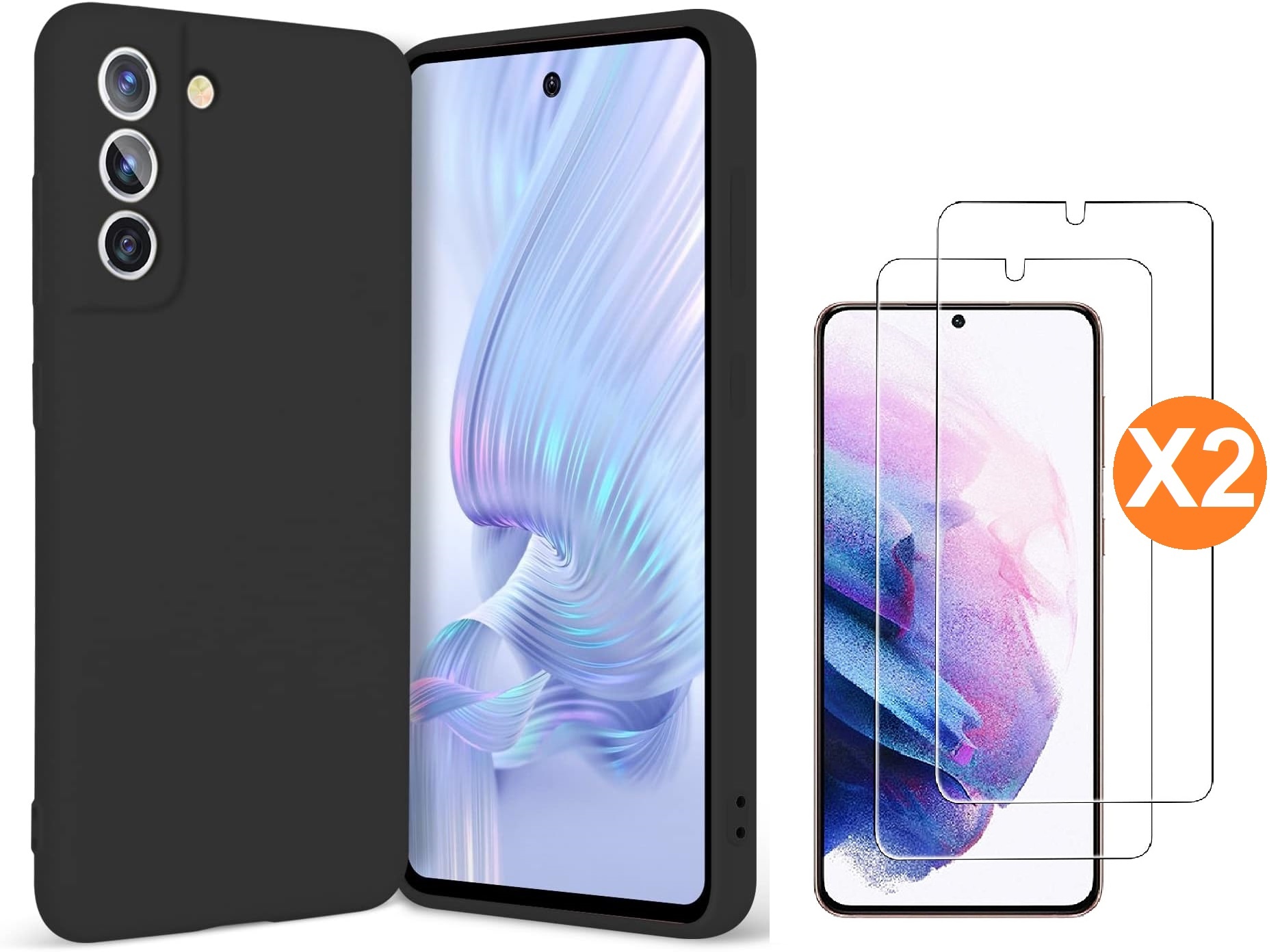 Hoesje Geschikt Voor Samsung Galaxy S21 FE Hoesje siliconen Zwart zacht siliconen hoesje TPU backcover - Met Screenprotector - 2 stuks