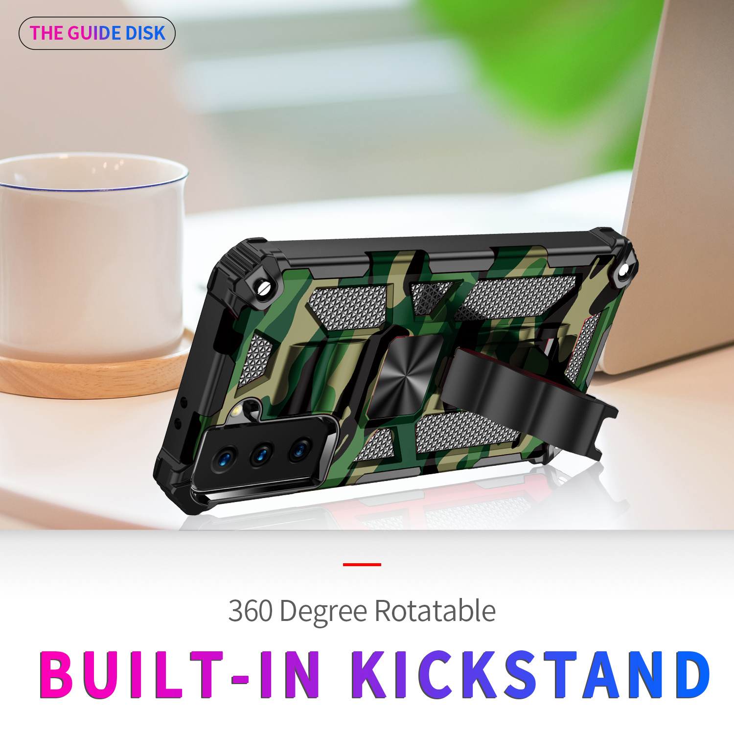 Samsung S21 Plus hoesje backcover armor case met ring houder Camouflage groen