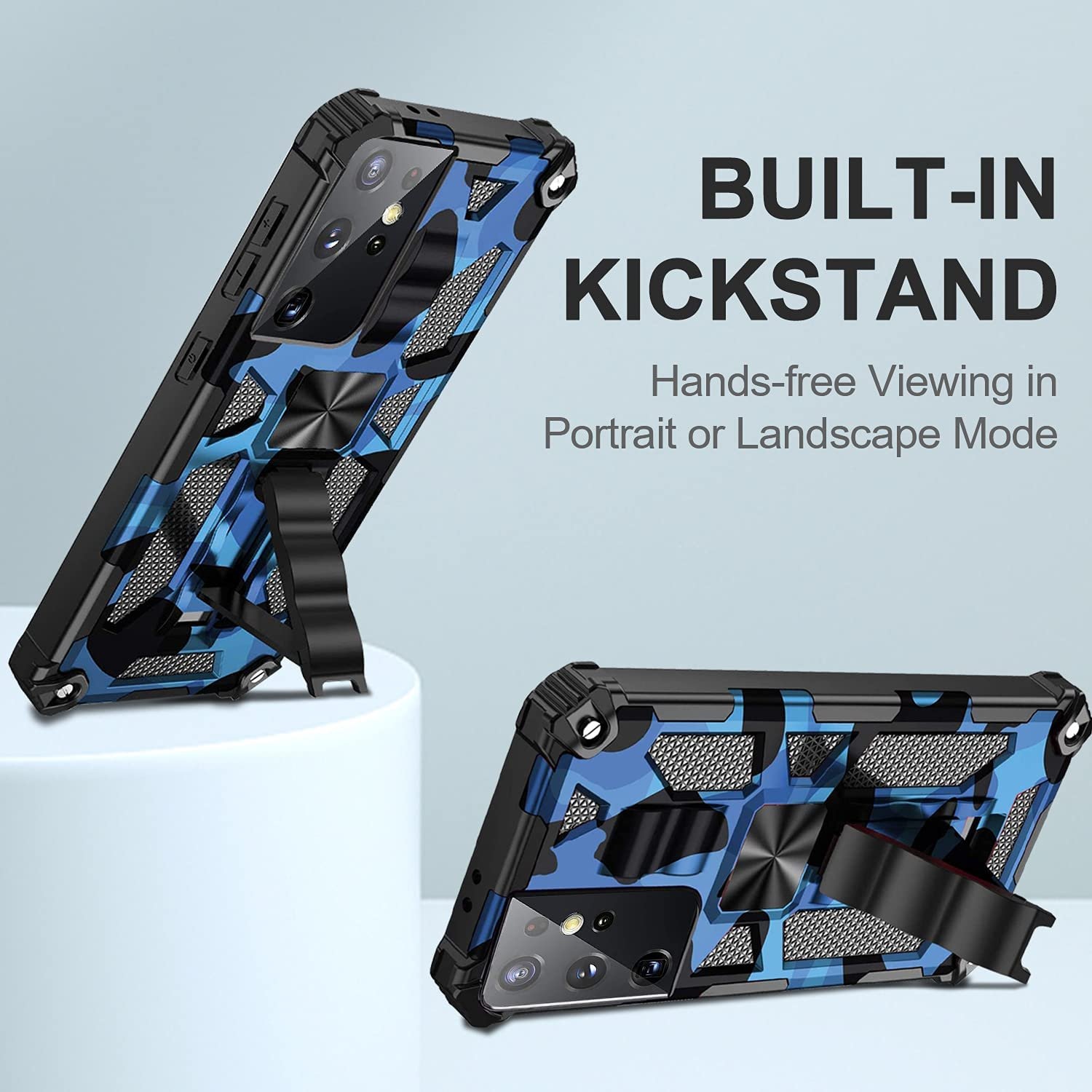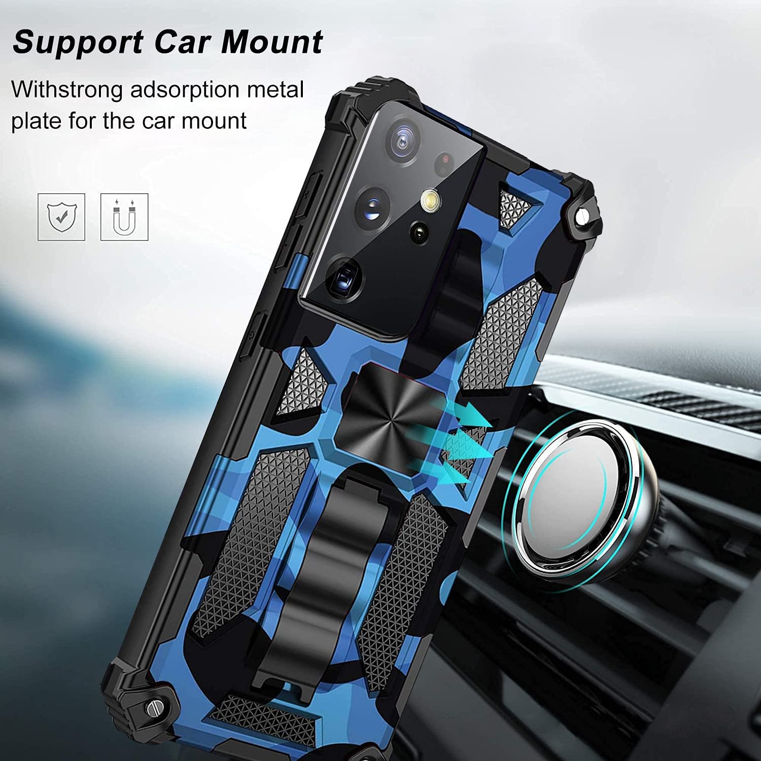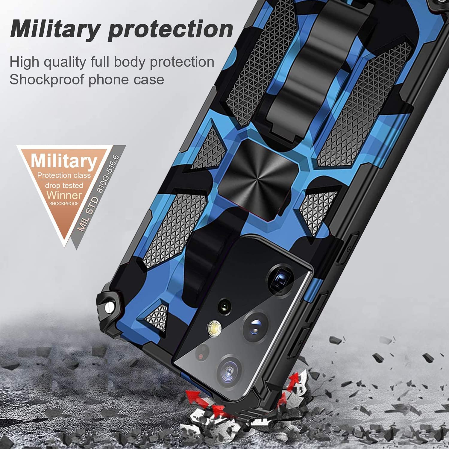 Samsung S21 Ultra hoesje backcover armor case met ring houder Camouflage blauw