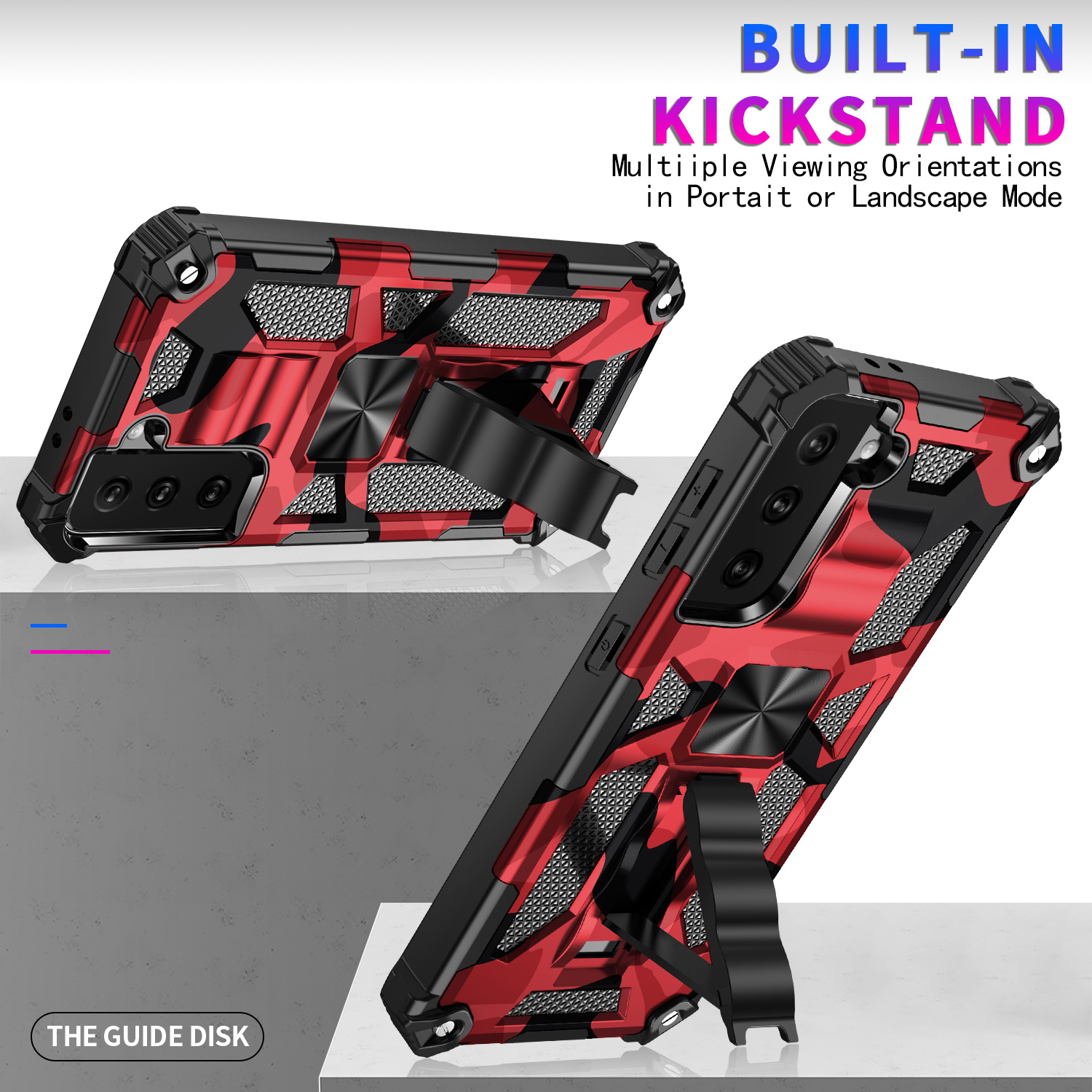 Samsung S22 hoesje backcover armor case met ring houder Camouflage rood