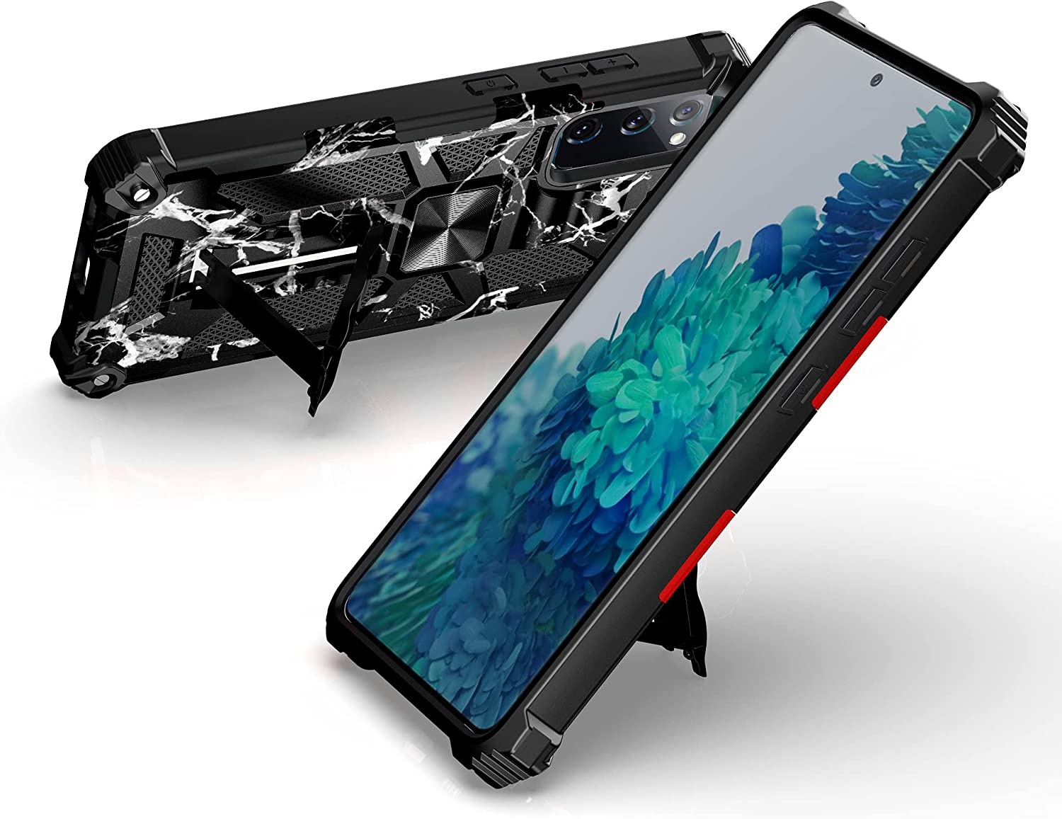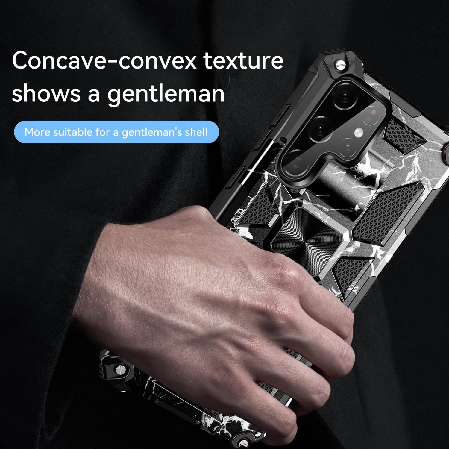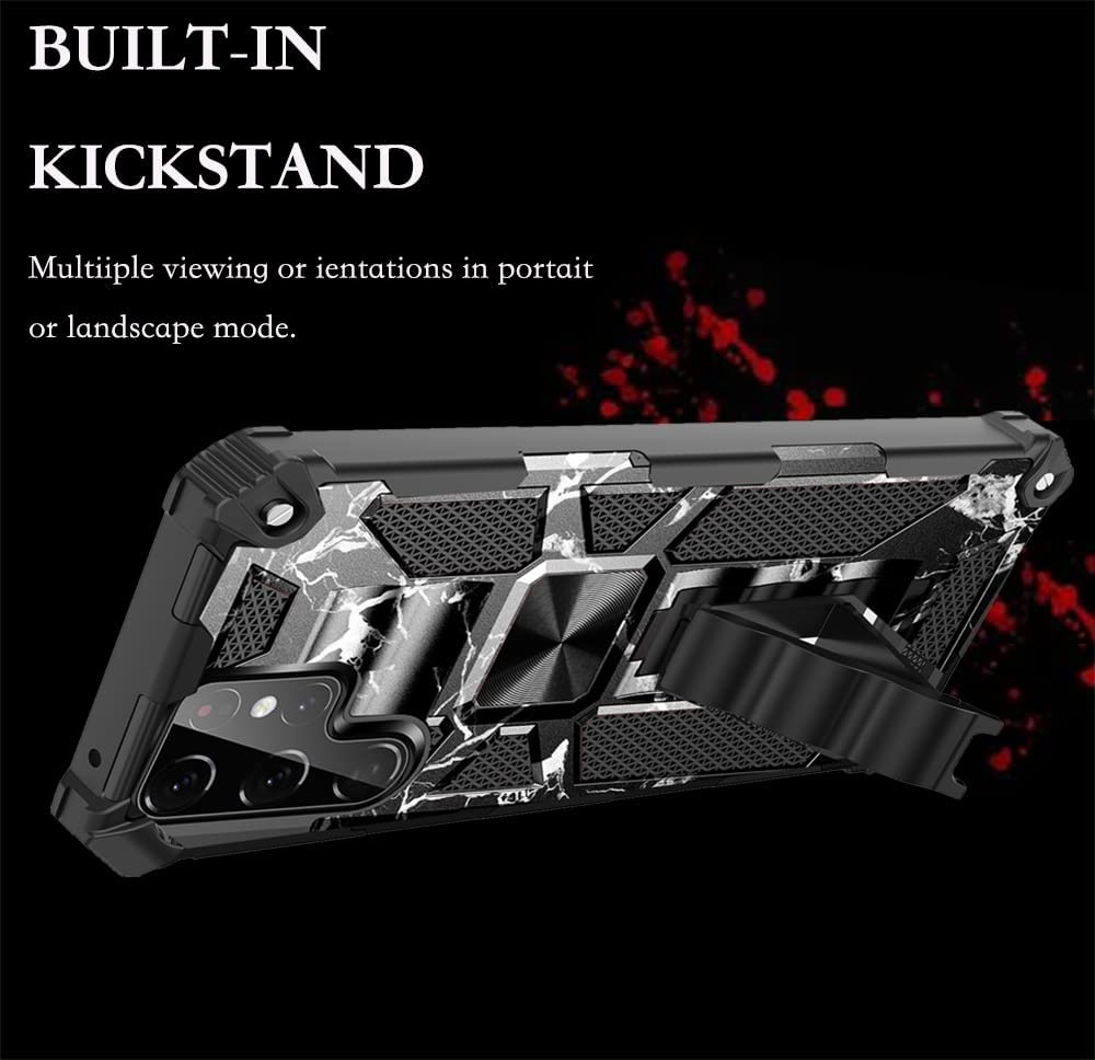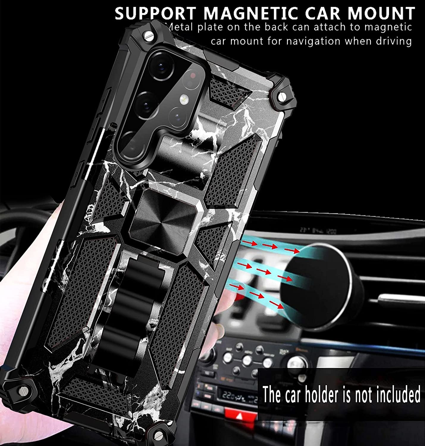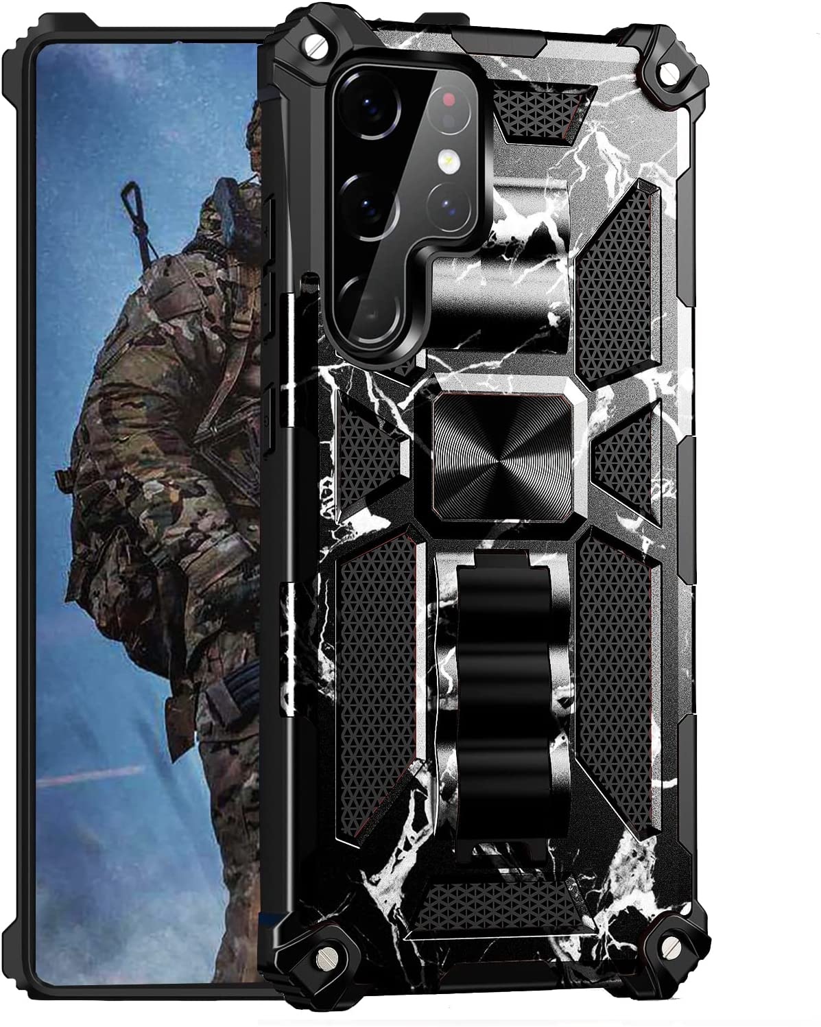Samsung S22 Ultra hoesje backcover armor case met ring houder Camouflage Marmer - Zwart / wit en zwart