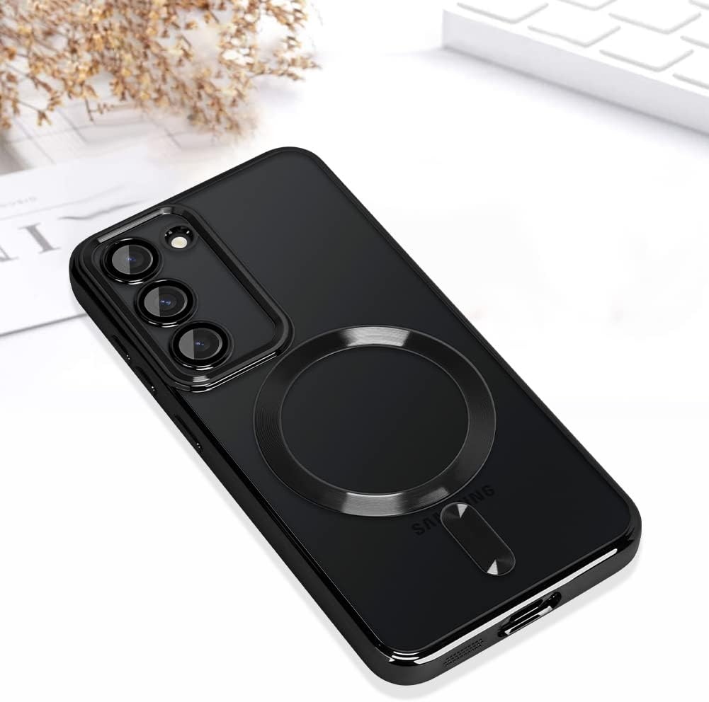 Hoesje Geschikt Voor Samsung Galaxy S23 hoesje Magnetisch Met Lens beschermer Transparant / Zwart – Magneet hoesje