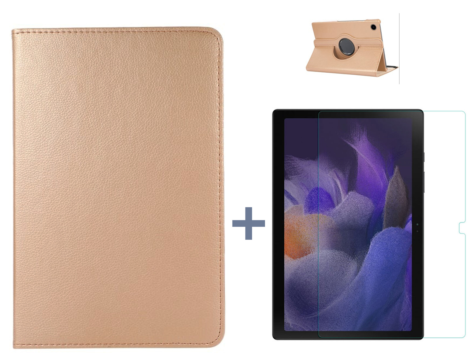 Hoesje Geschikt Voor Samsung Galaxy Tab A8 Hoes Goud - Hoesje Geschikt Voor Samsung Galaxy Tab A8 hoesje 2021 - tablethoes draaibare book case Hoesje Geschikt Voor Samsung Galaxy Tab A8 Screenprotector / tempered glass