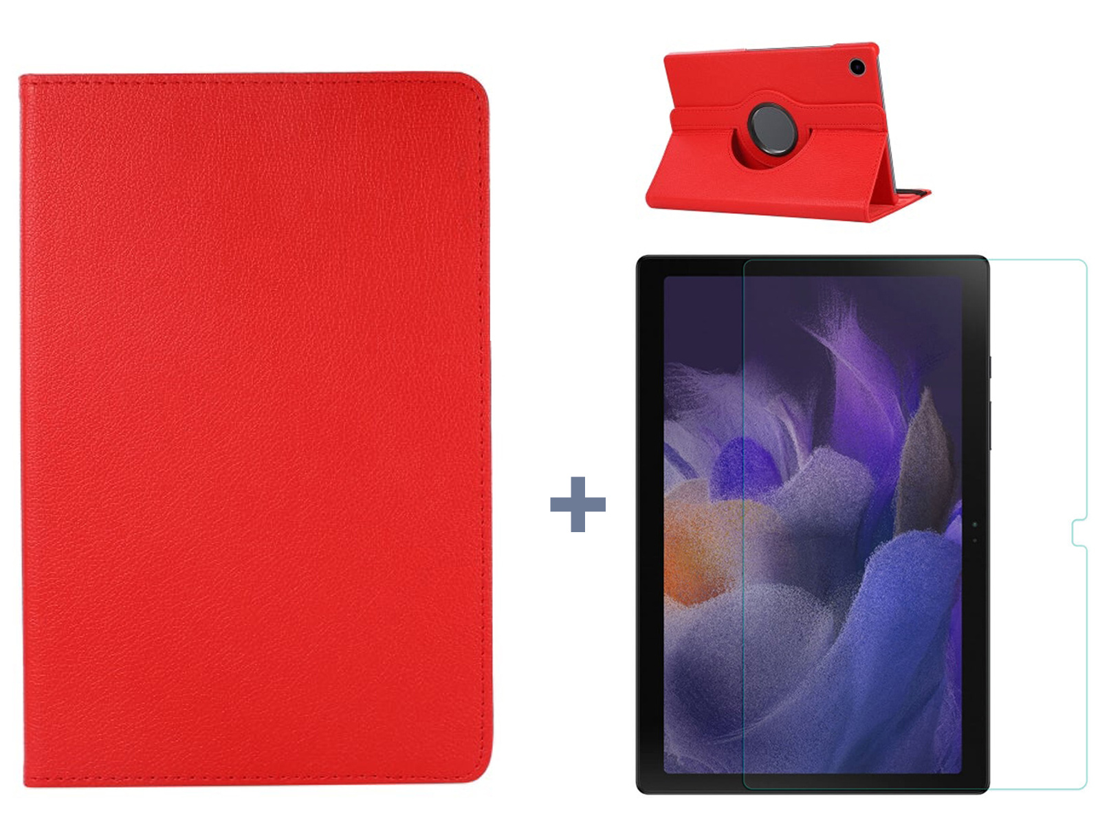Hoesje Geschikt Voor Samsung Galaxy Tab A8 Hoes Rood - Hoesje Geschikt Voor Samsung Galaxy Tab A8 hoesje 2021 - tablethoes draaibare book case Hoesje Geschikt Voor Samsung Galaxy Tab A8 Screenprotector / tempered glass