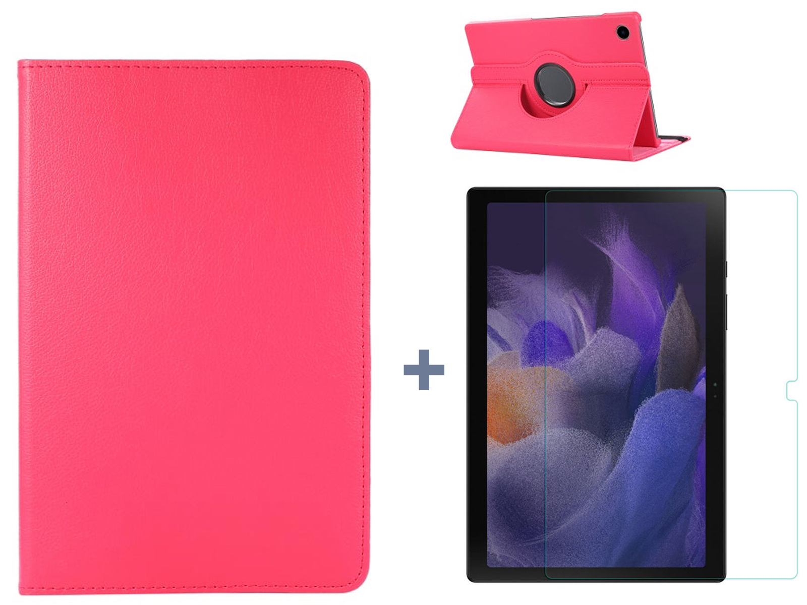 Hoesje Geschikt Voor Samsung Galaxy Tab A8 Hoes Roze - Hoesje Geschikt Voor Samsung Galaxy Tab A8 hoesje 2021 - tablethoes draaibare book case Hoesje Geschikt Voor Samsung Galaxy Tab A8 Screenprotector / tempered glass