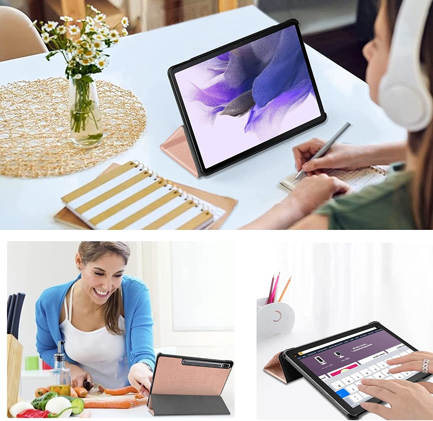 Hoes Geschikt voor Samsung Galaxy Tab S8 Plus hoes Book Case Smart Cover Rose Goud - Hoes Geschikt voor Samsung Galaxy Tab S8 Plus hoes - Hoes Geschikt voor Samsung Galaxy Tab S7 FE hoes bookcase - Tab S7 plus hoes Trifold hoes -Tablet Hoes 12.4 Inch