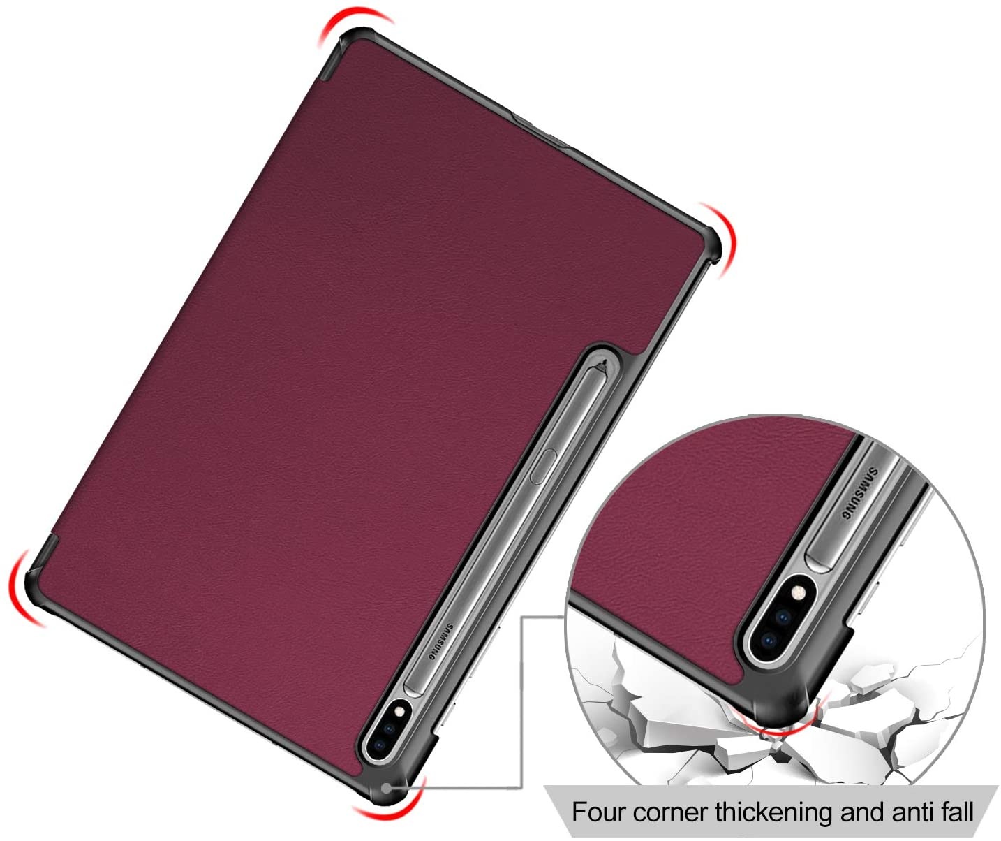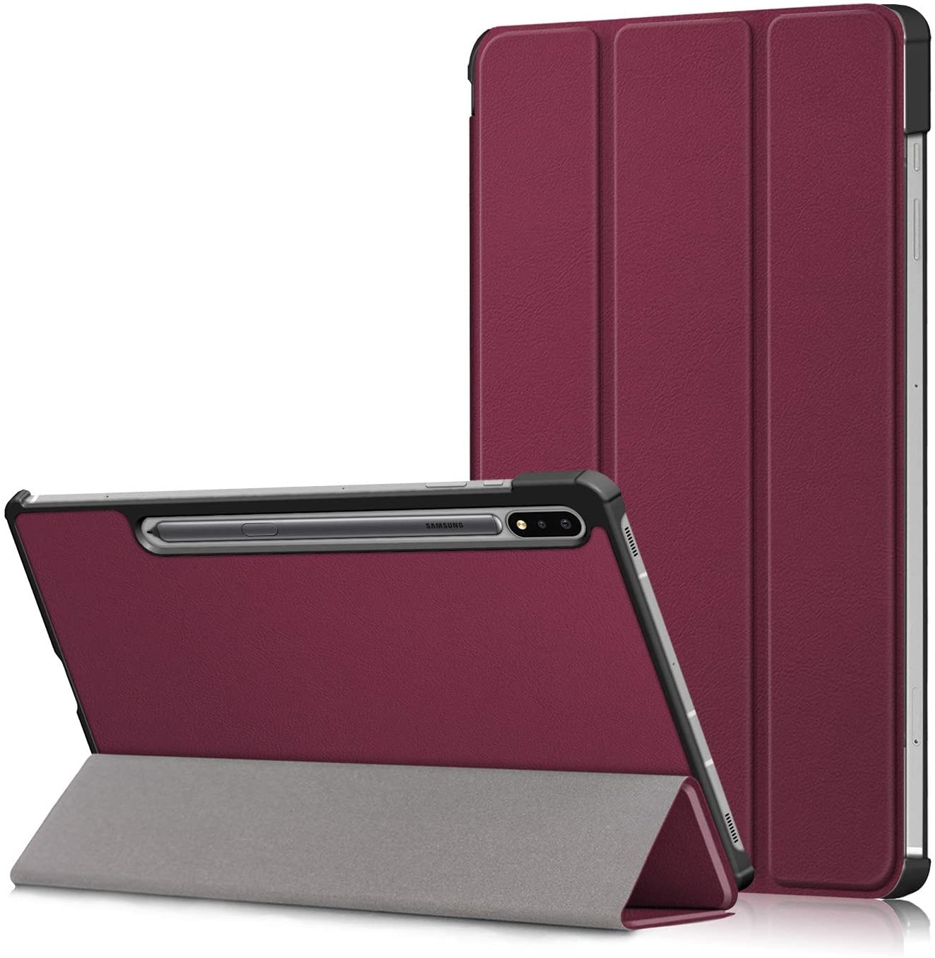 Hoes Geschikt voor Samsung Galaxy Tab S8 Plus hoes Book Case Smart Cover Wine Rood - Hoes Geschikt voor Samsung Galaxy Tab S8 Plus hoes - Hoes Geschikt voor Samsung Galaxy Tab S7 FE hoes bookcase - Tab S7 plus hoes Trifold hoes -Tablet Hoes 12.4 Inch